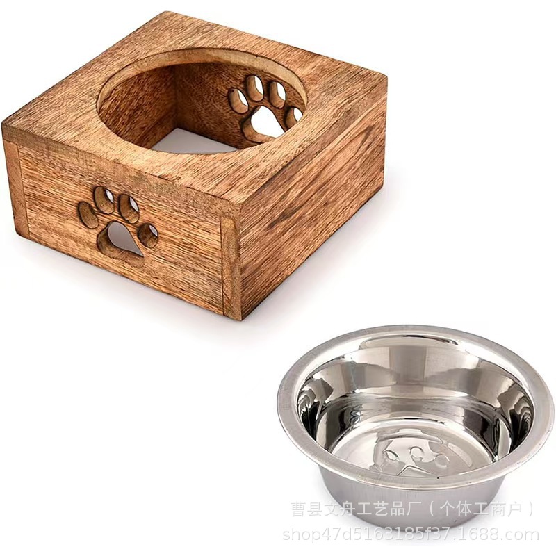나무 애완 동물 피더 가정용 고양이 작은 개 먹는 분지 소나무 애완 동물 용품 단단한 나무 고양이 그릇 랙스토어 가기