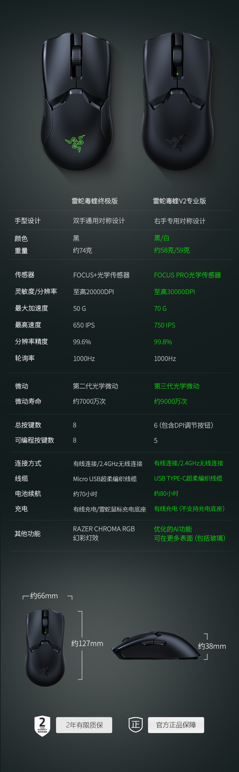 Thundersnake (Razer) V2Pro Viper 게임 마우스 전기 경쟁 마우스 전문 무선 듀얼 모드스토어 가기