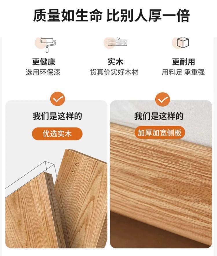 • [무료 위층 설치] 원목 침대 + 20cm 매트 + 캐비닛 * 2