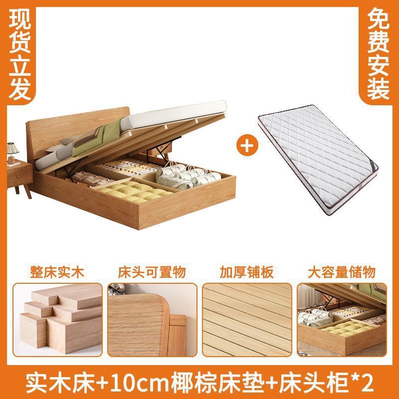 • [무료 위층 설치] 원목 침대 + 10cm 매트 + 캐비닛 * 2
