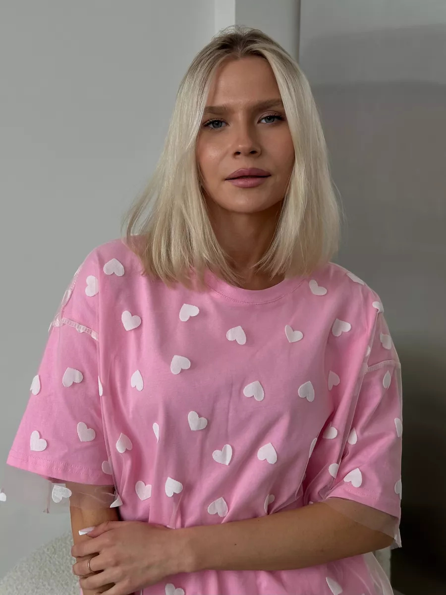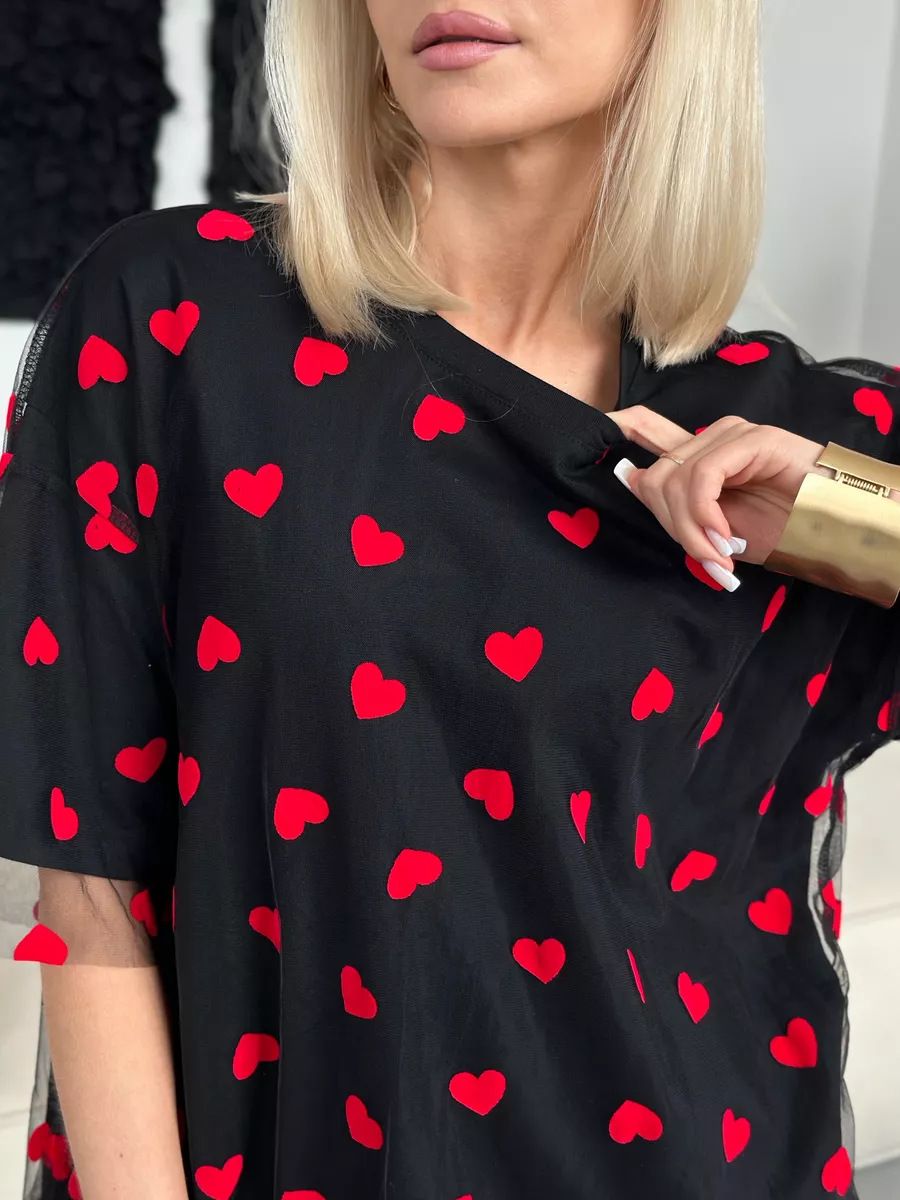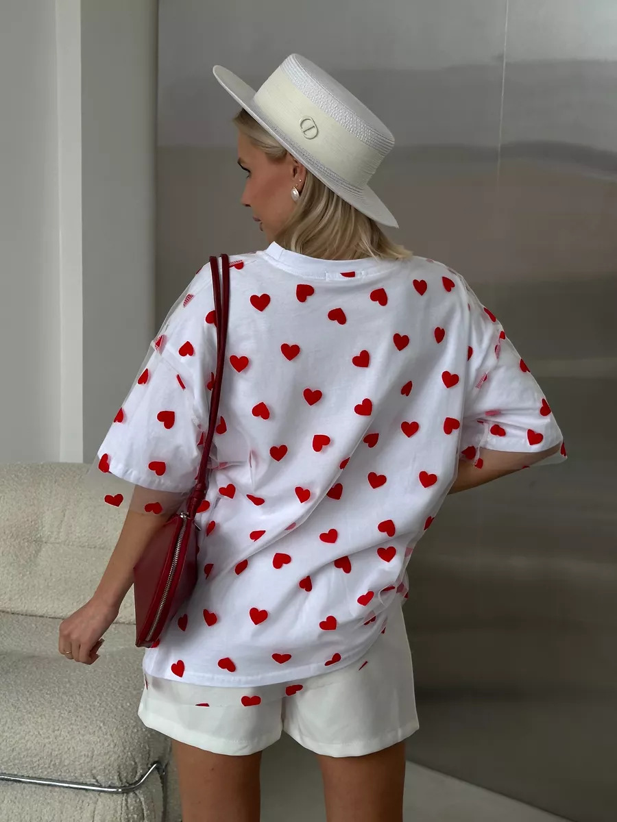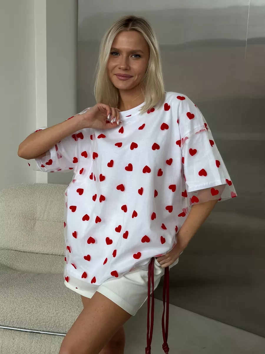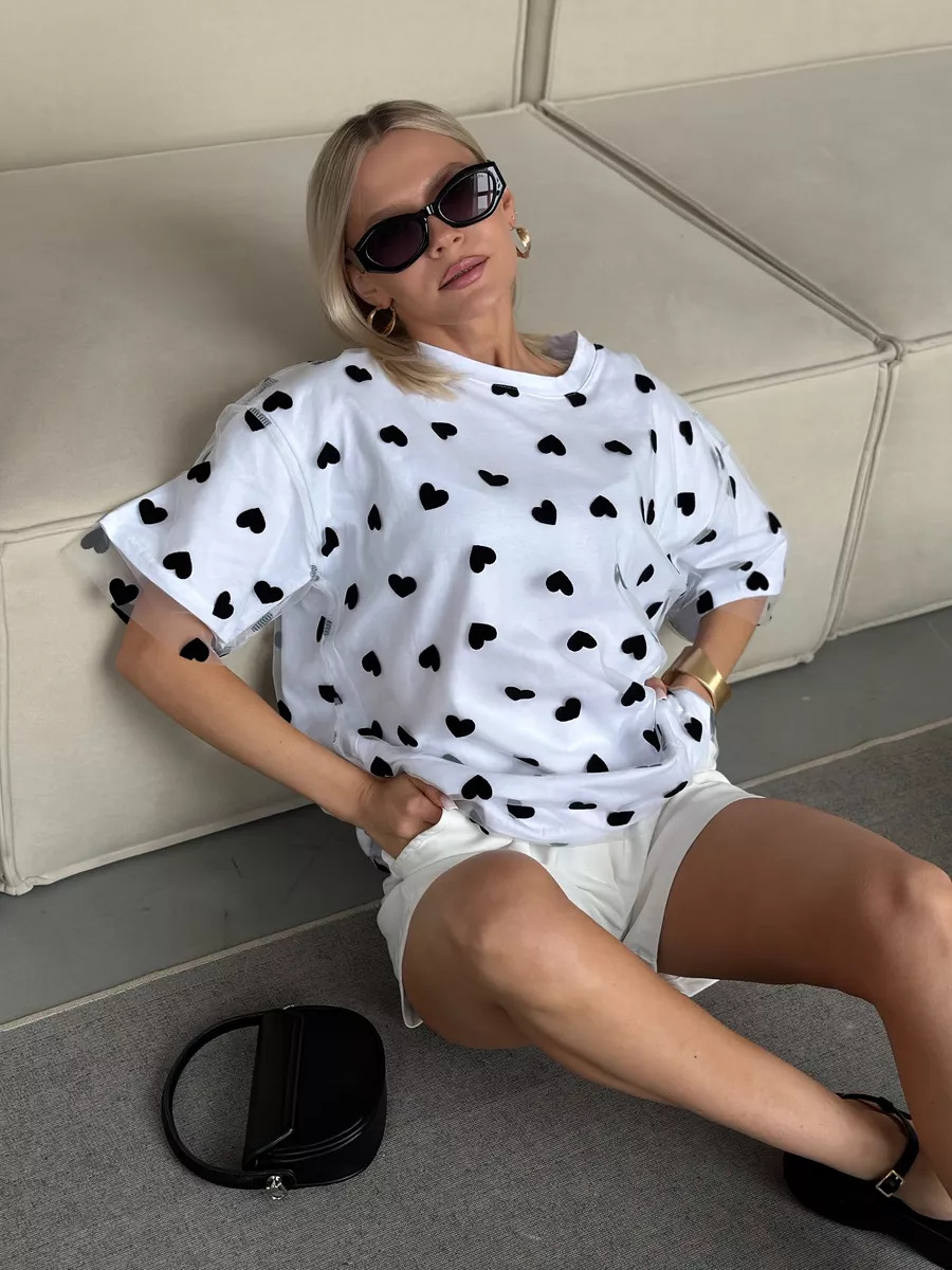 2025 새로운 국경 유럽과 미국 스타일의 섹시한 여성의 사랑 메쉬 바느질 느슨한 기본 라운드 넥 반팔 티셔츠스토어 가기