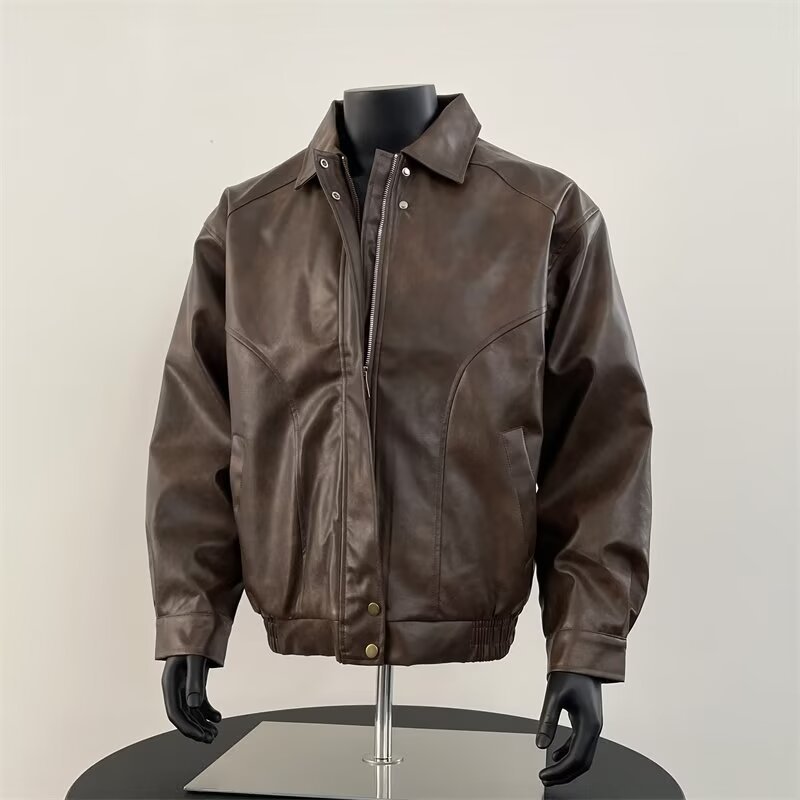 새로운 올 매치 PU 가죽 자켓 미국 레트로 트렌디 브랜드 가죽 남성 봄과 가을 하이 엔드 세련된 옷깃 재킷스토어 가기