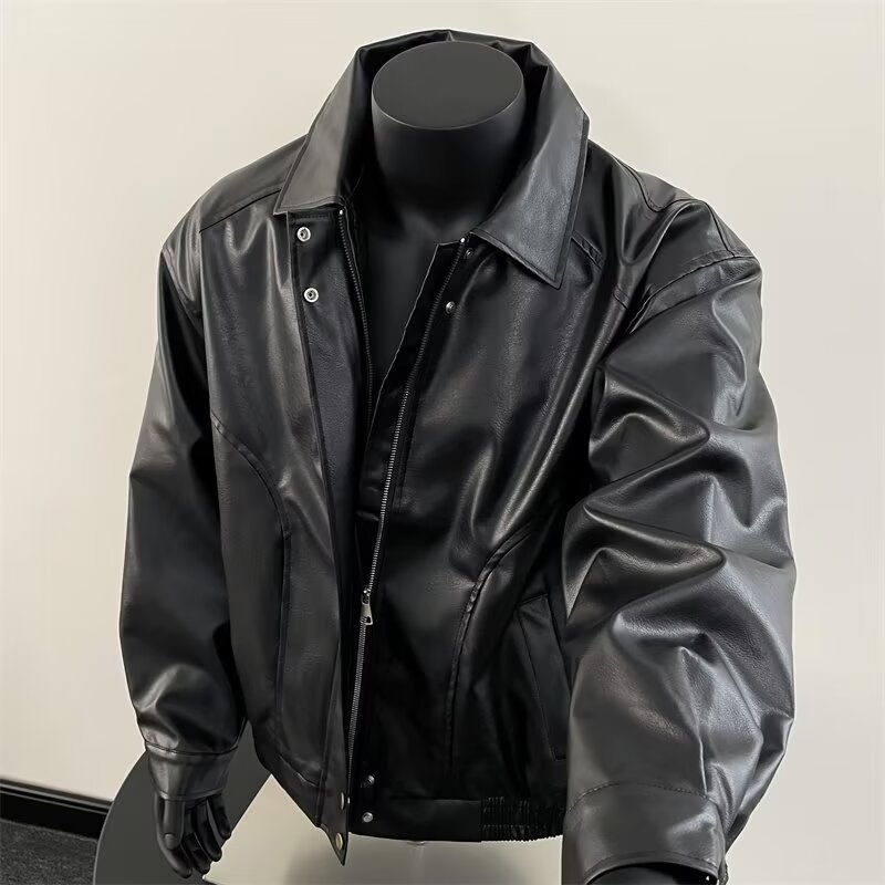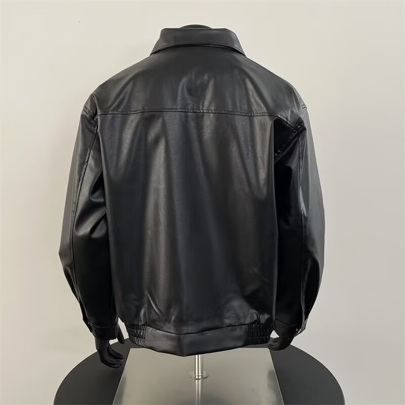 새로운 올 매치 PU 가죽 자켓 미국 레트로 트렌디 브랜드 가죽 남성 봄과 가을 하이 엔드 세련된 옷깃 재킷