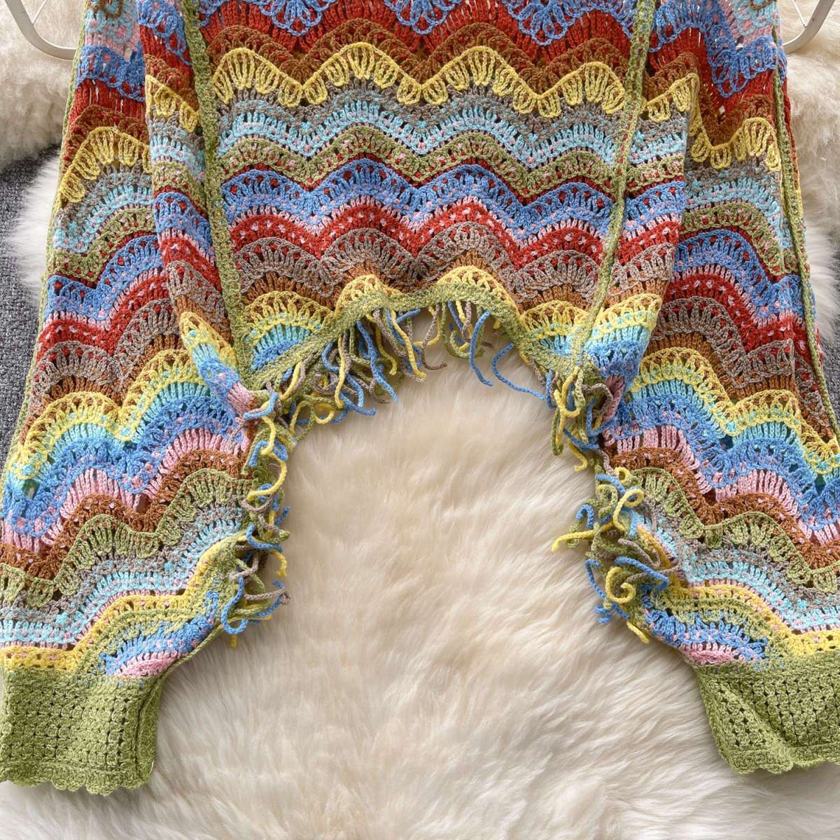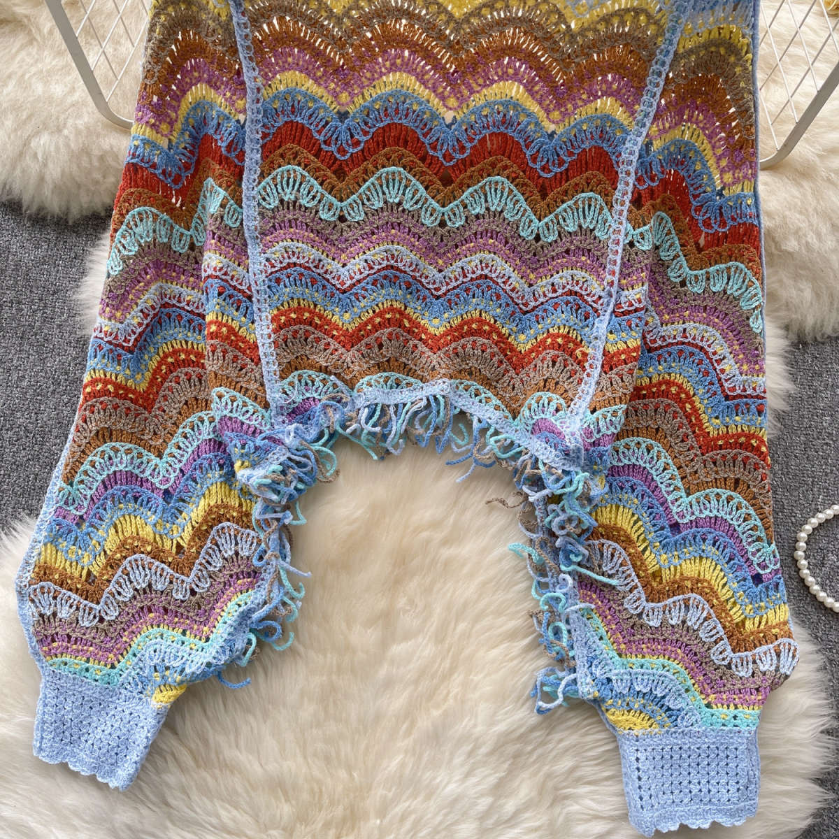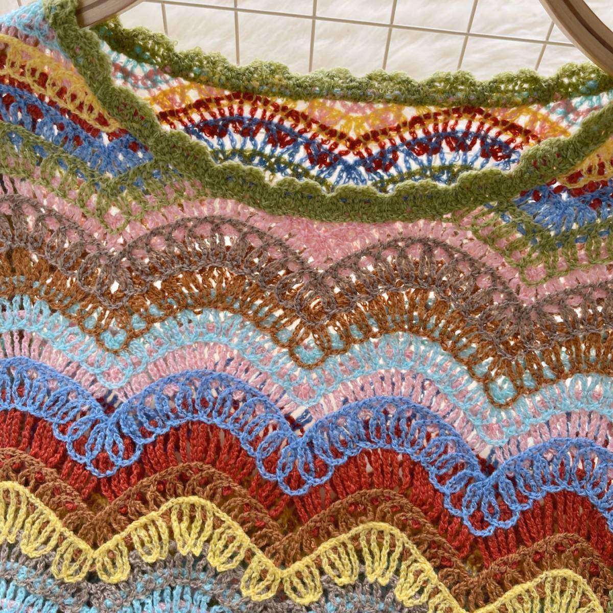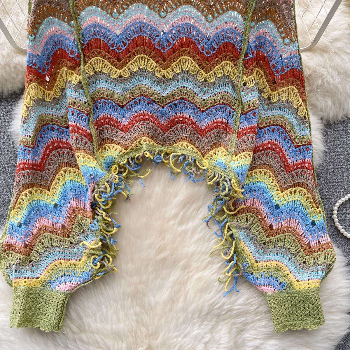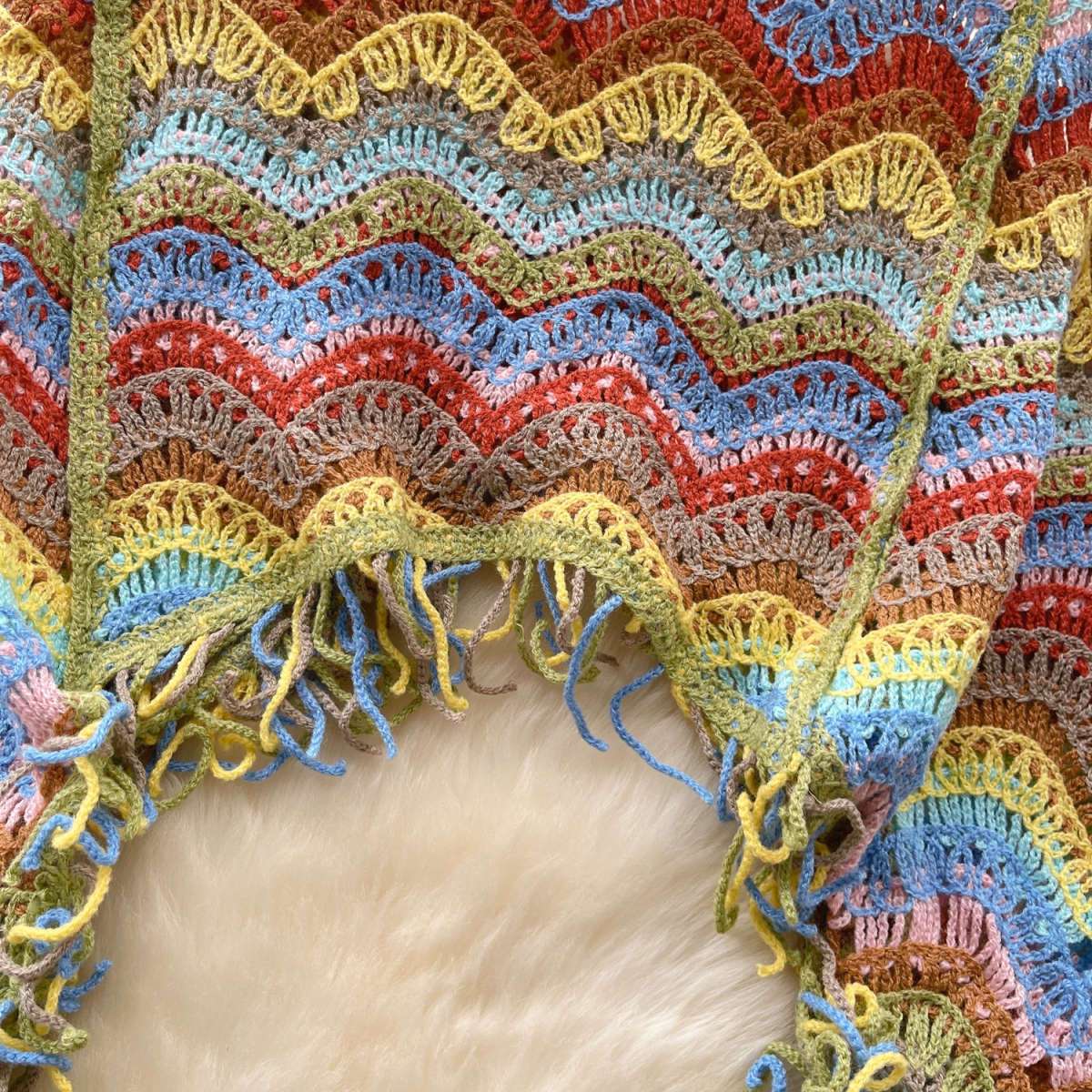 컬러풀한 컷아웃 크로셰 배트 슬리브 크롭 니트 여성 여행 휴가 스타일 긴팔 상의 컷아웃 디자인