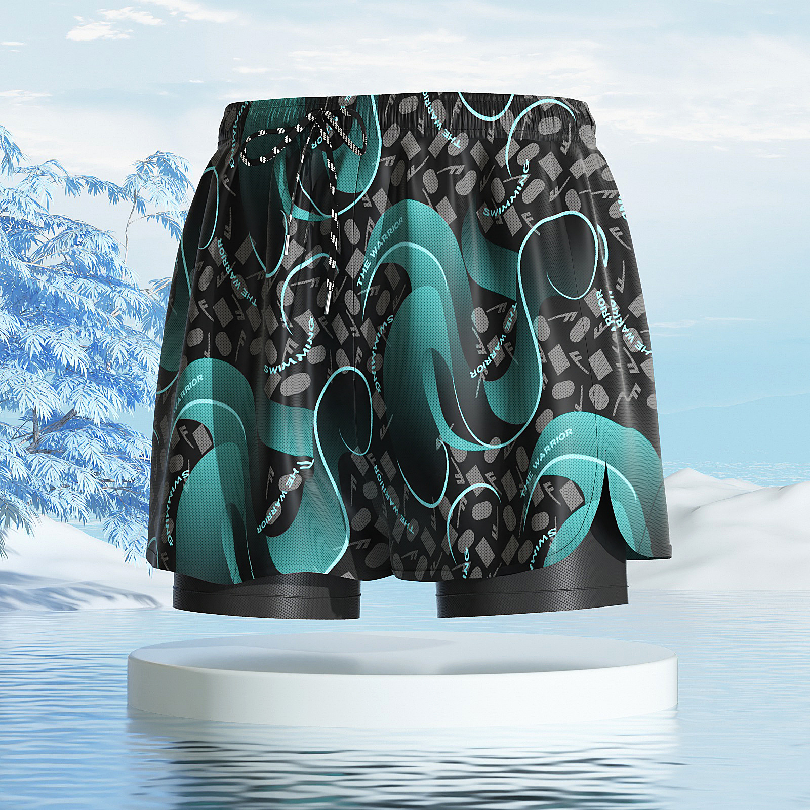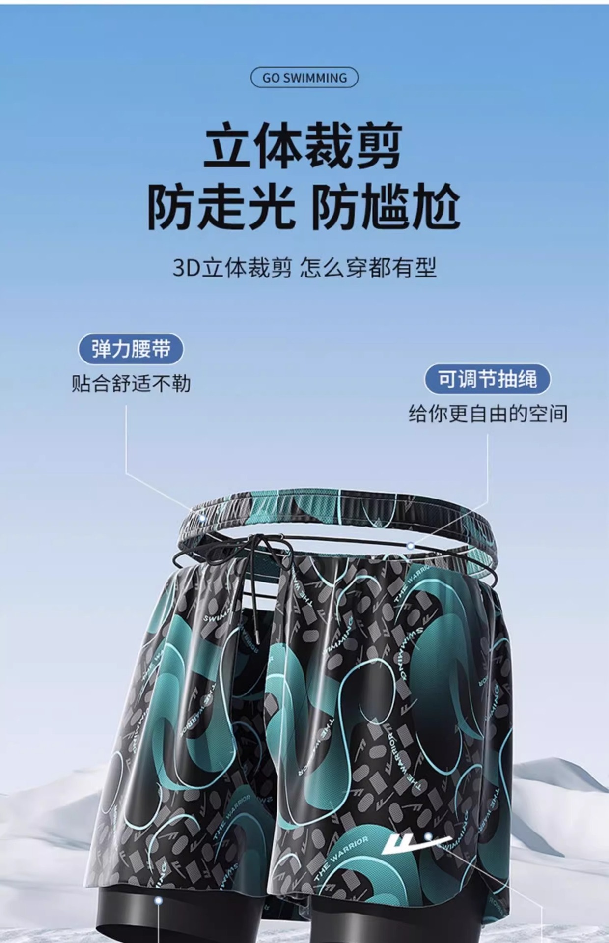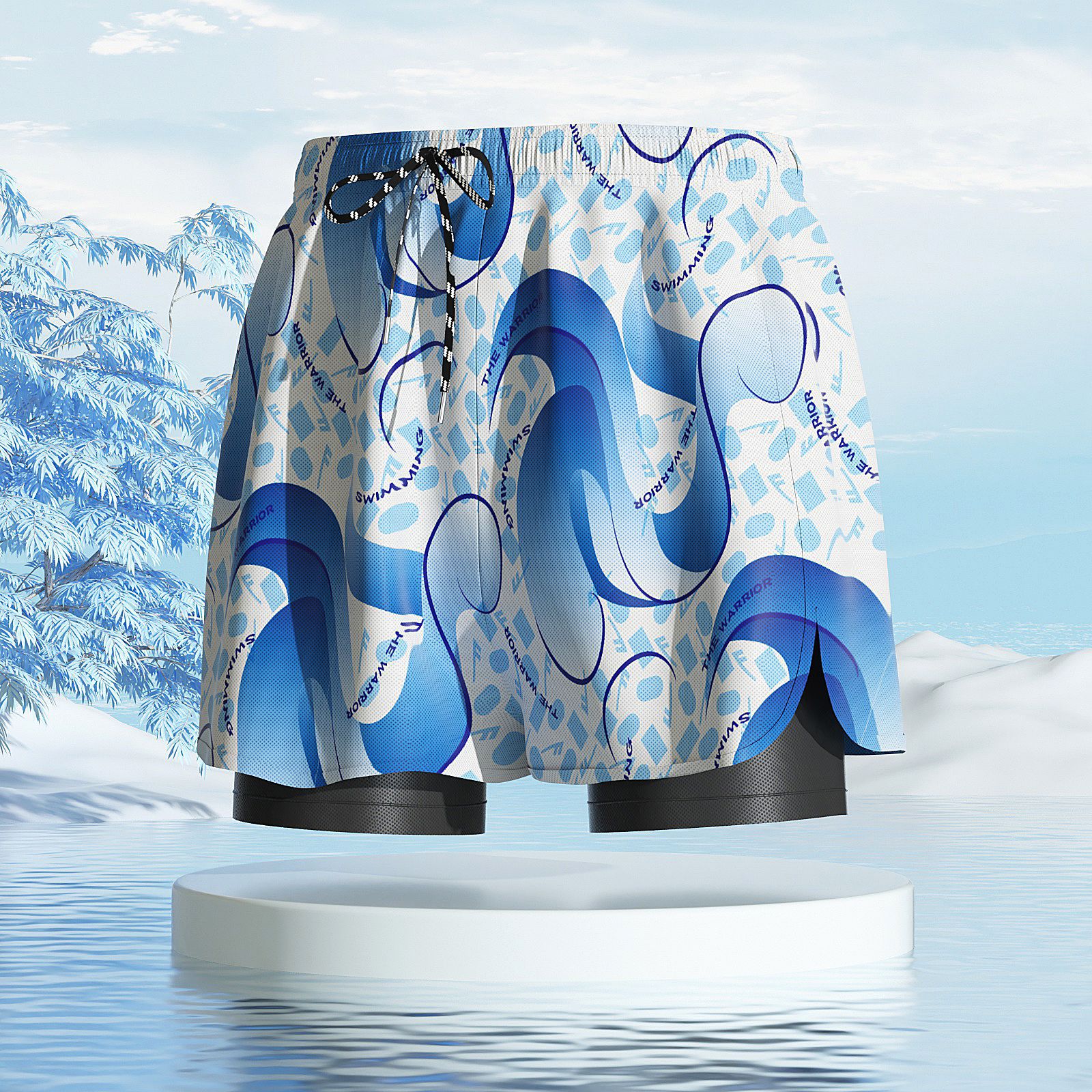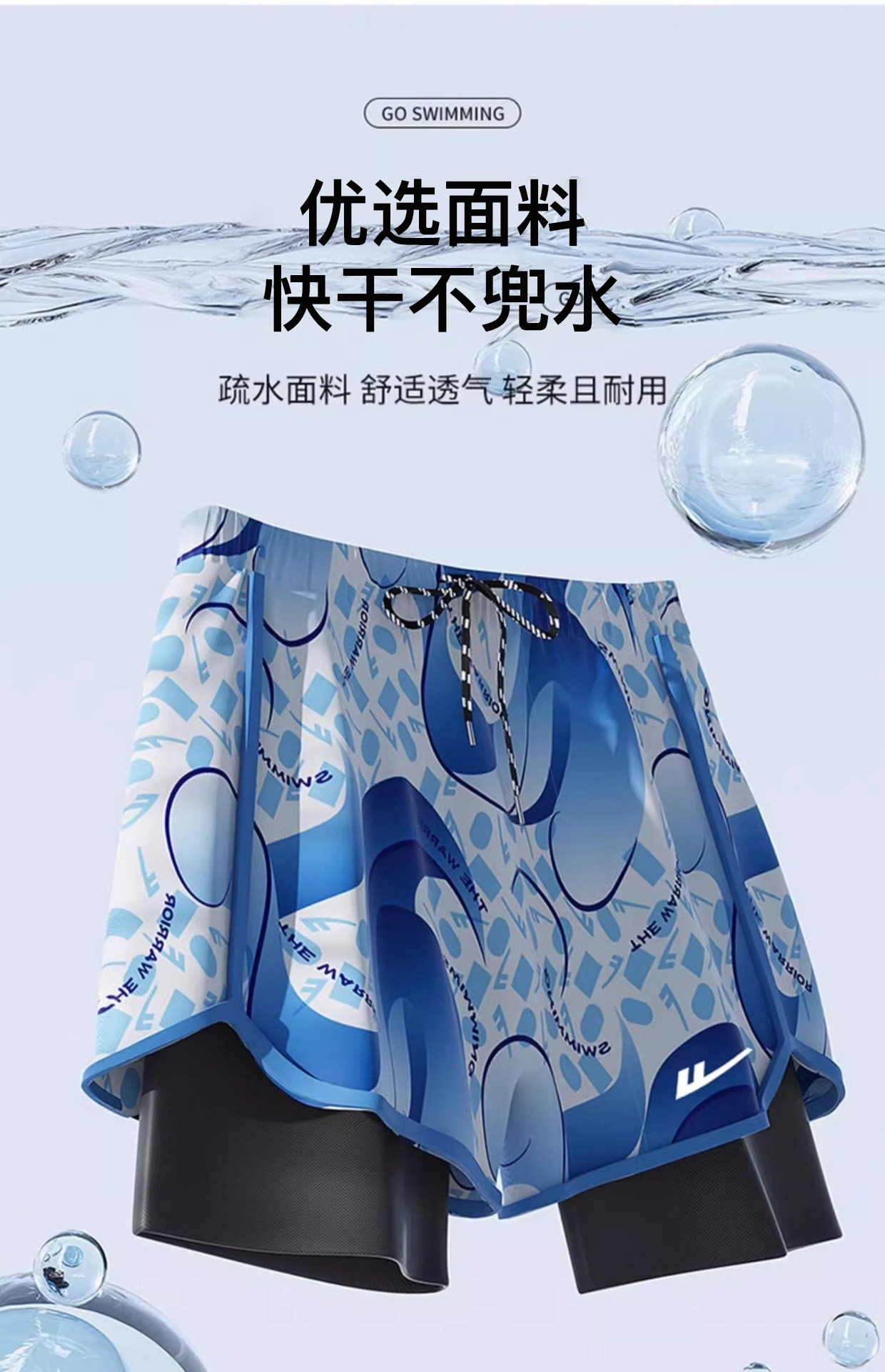 • 파란색과 흰색 [더블 레이어 수영 트렁크]