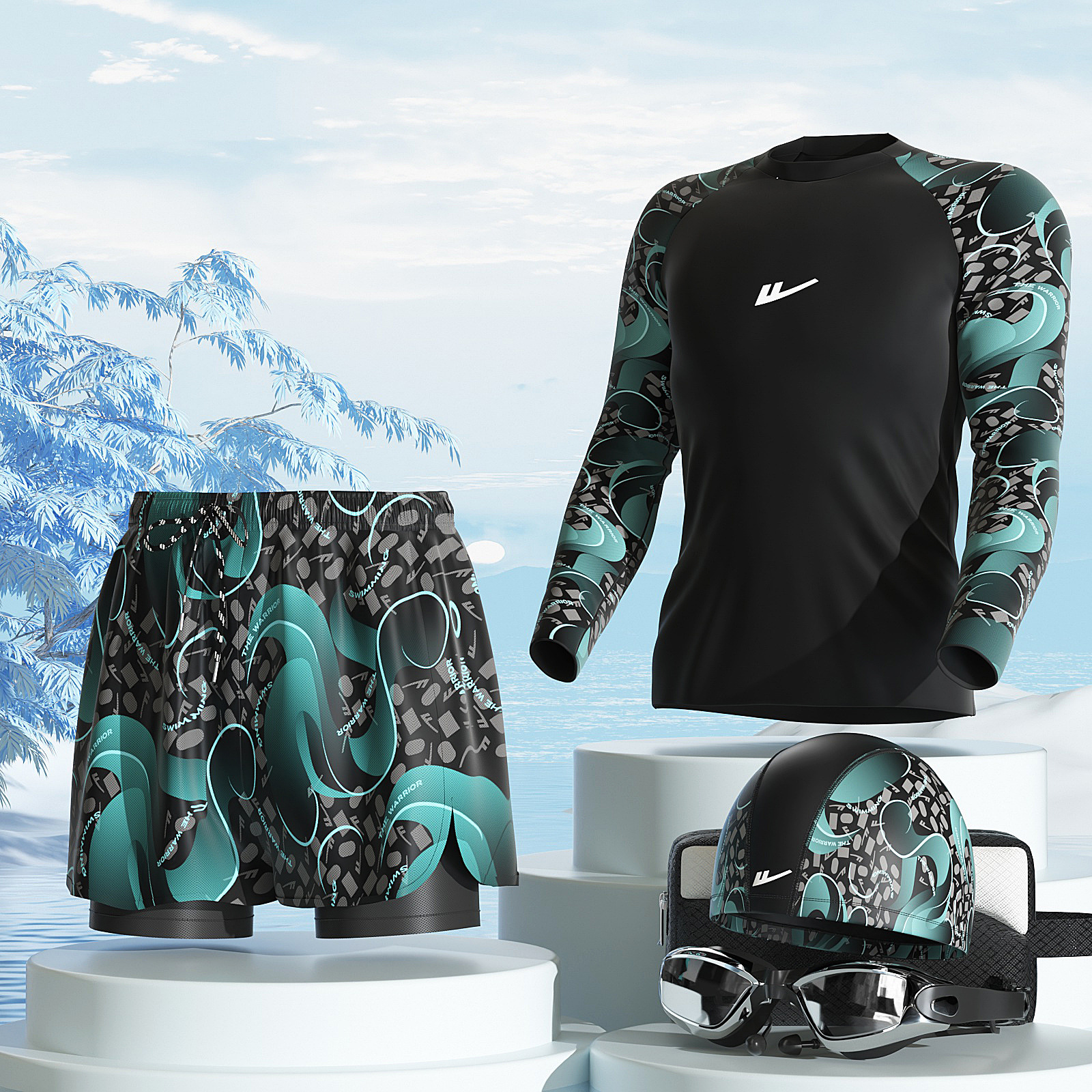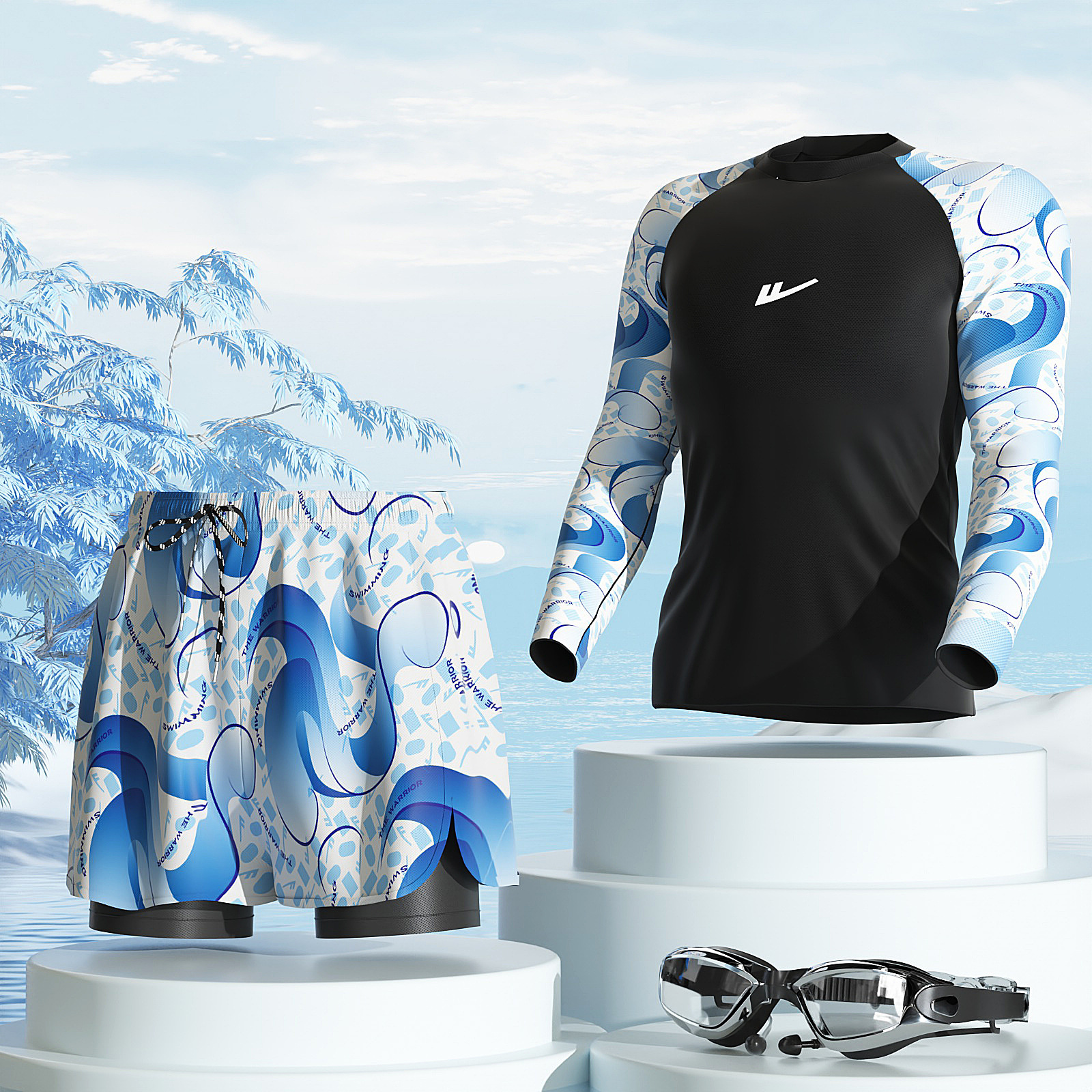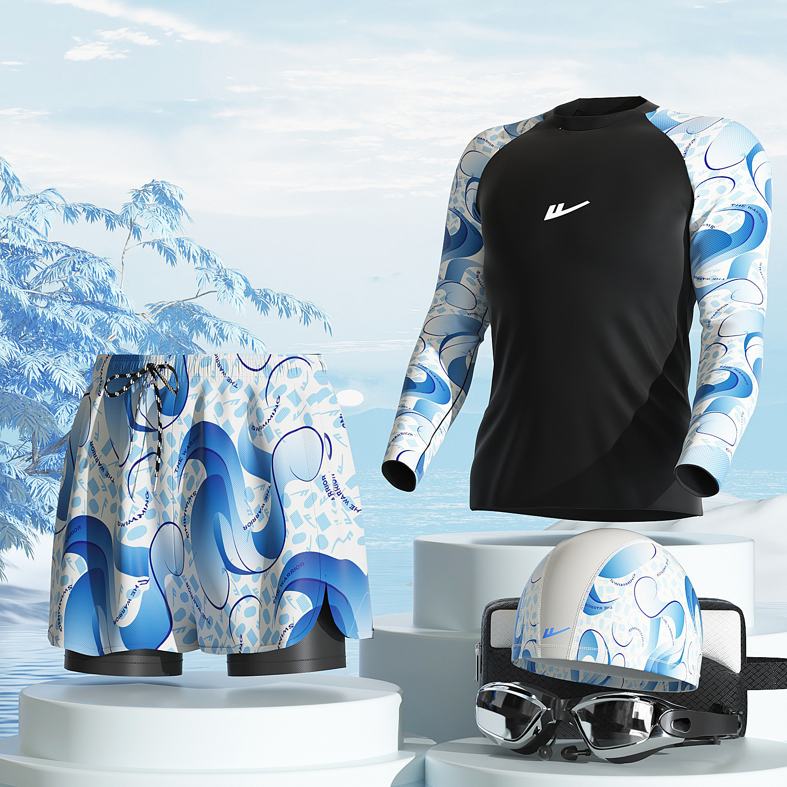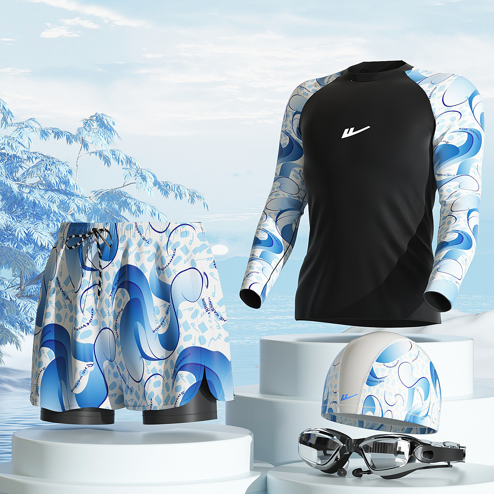 • 파란색과 흰색 [수영 3종 세트]