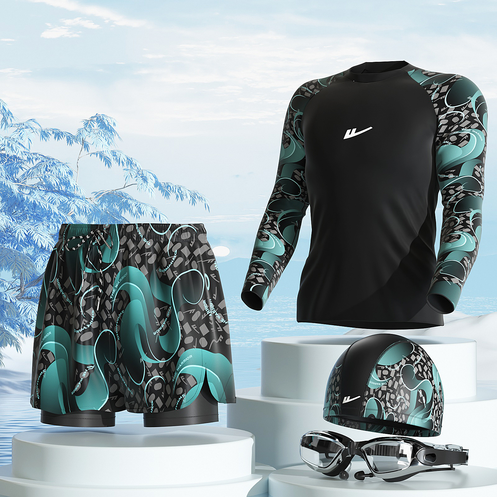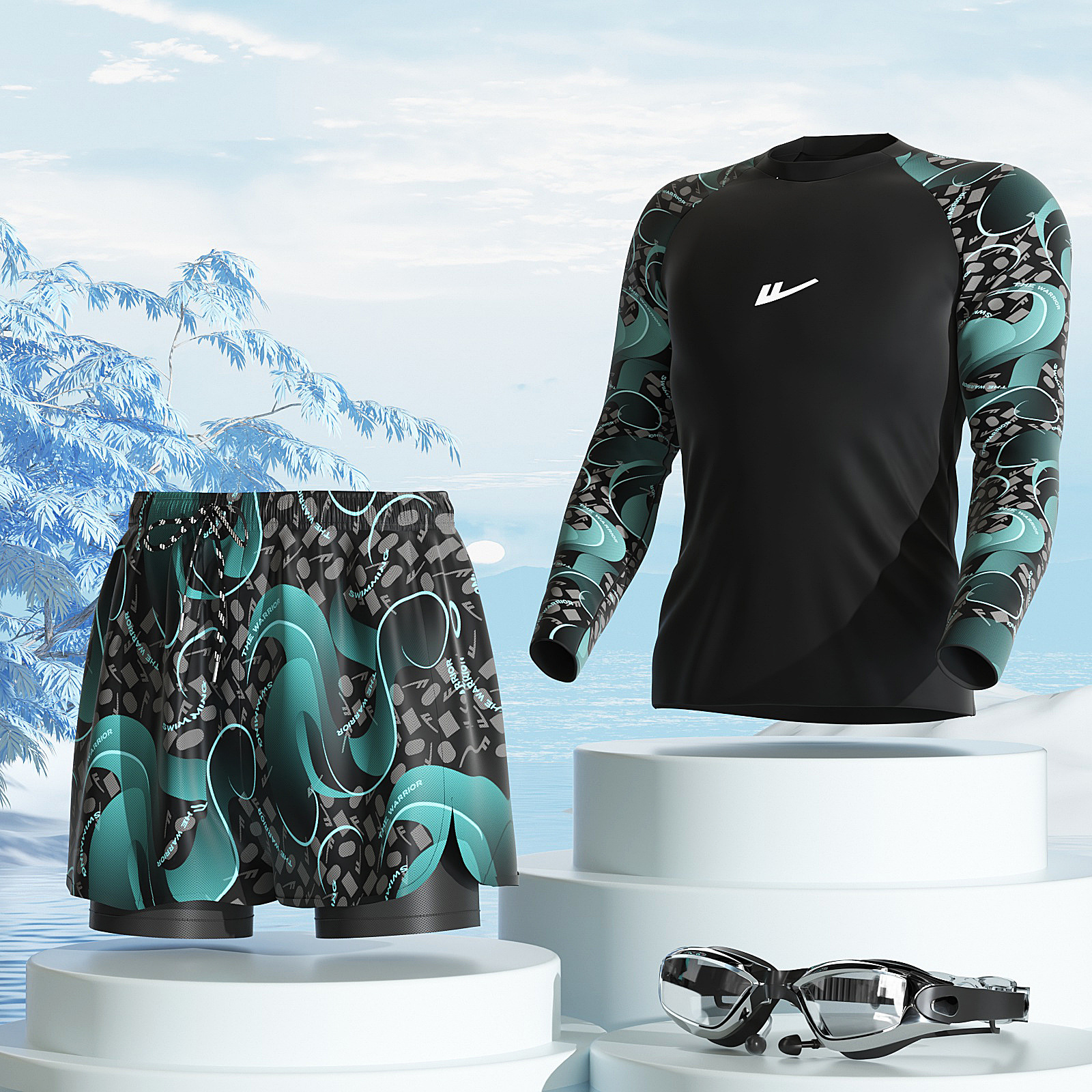 남성용 수영복 세트 2026 신상 긴팔 안티-어색한 상황 방지 온천 수영복 남성용 수영복 장비 풀세트