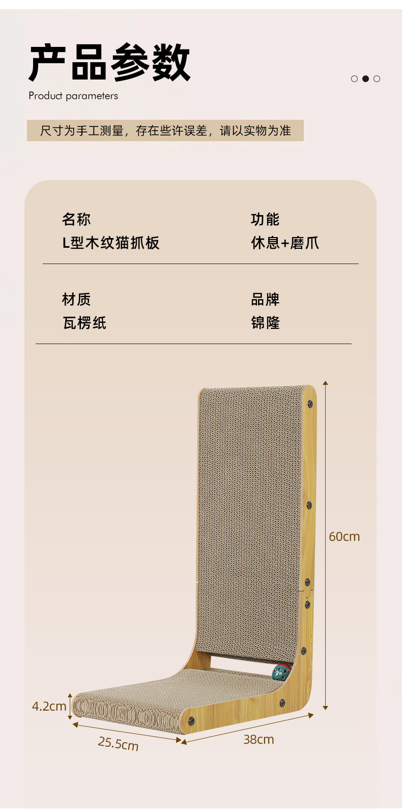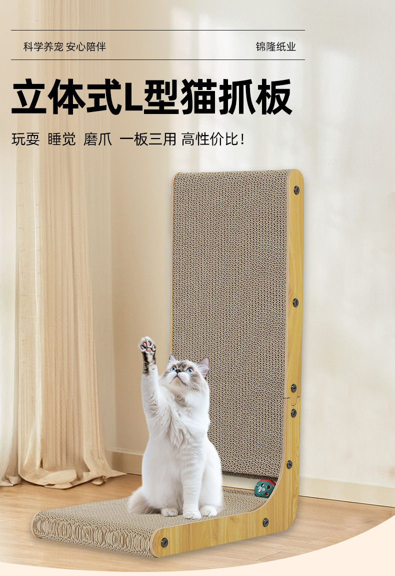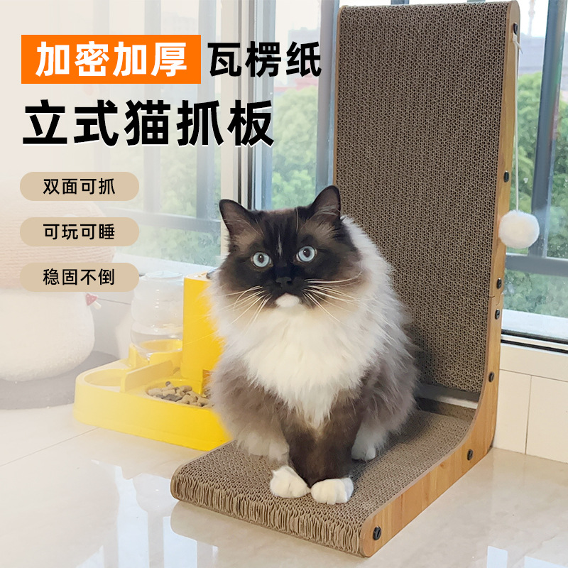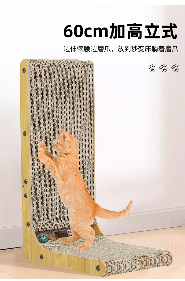 L자형 수직 골판지 대형 고양이 스크래치 보드, 긁힘 방지, 내마모성 및 비분해성 고양이 발톱 연삭 장난감, 고양이 둥지 및 고양이 클라이밍 프레임