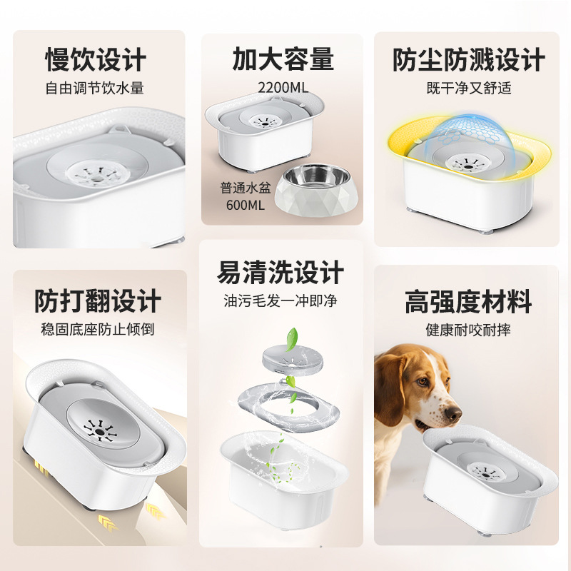 애완 동물 공급 개 떠 다니는 물 그릇 대용량 넘침 방지 젖은 입 흡입 컵 뒤집기 방지 개 물 그릇 국경