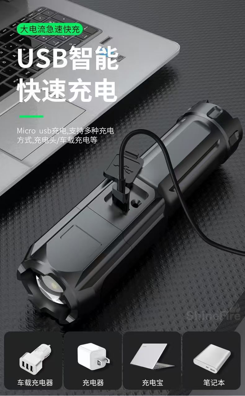 뜨거운 판매 편리한 충전 장거리 ABS 강한 빛 초점 손전등 야외 미니 LED 다기능 COB 작업 조명