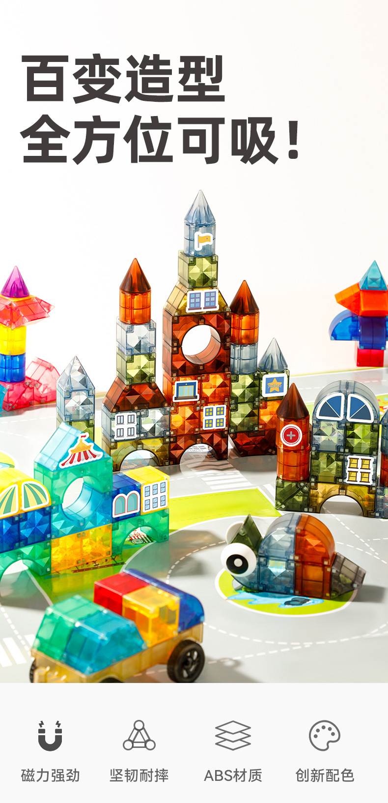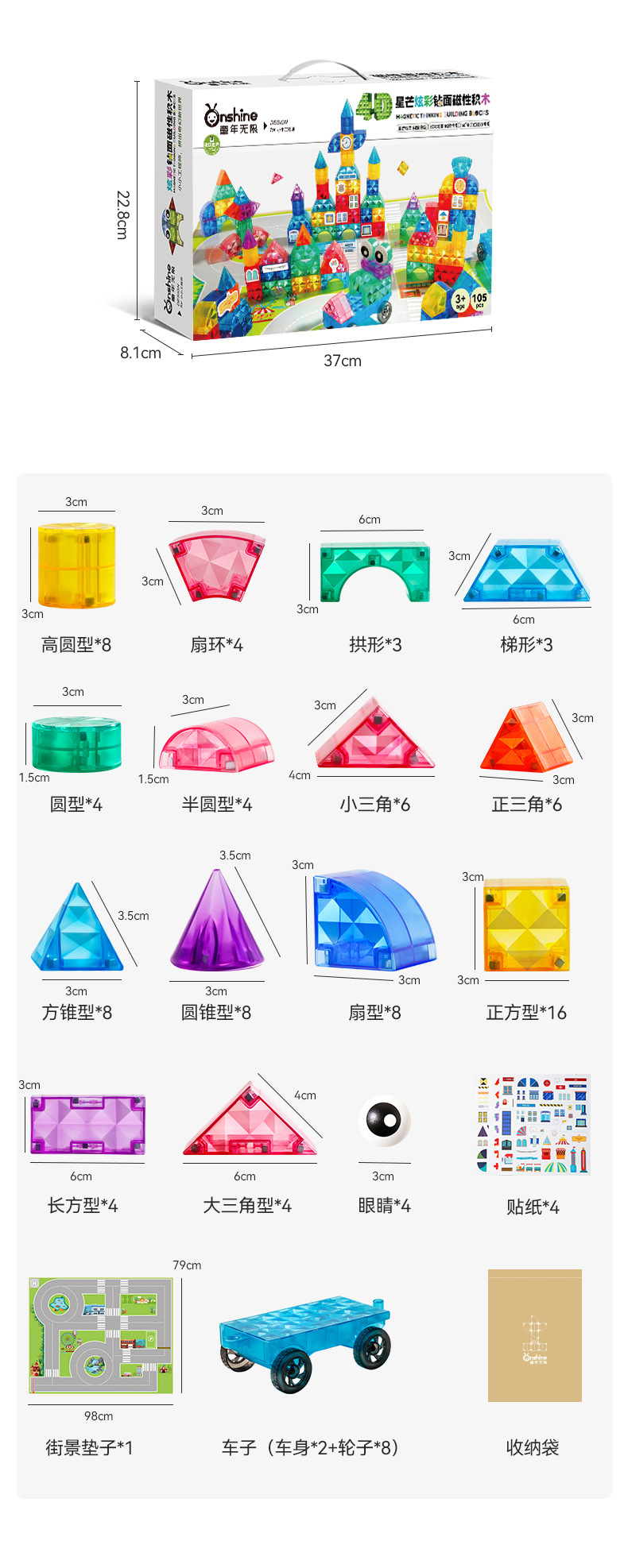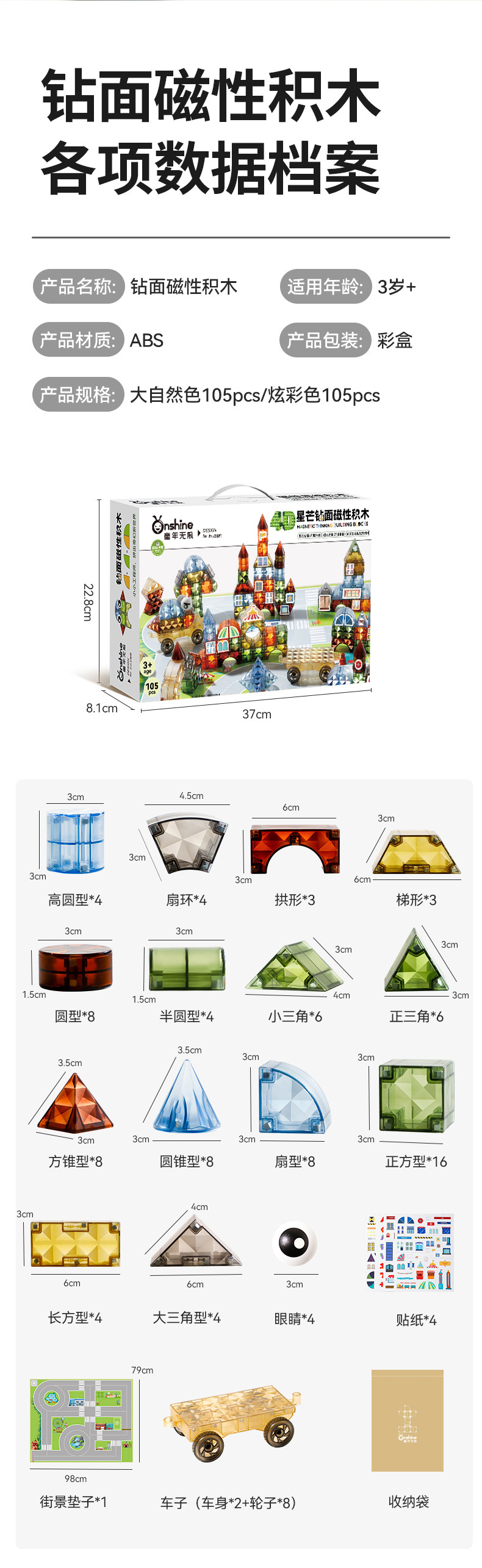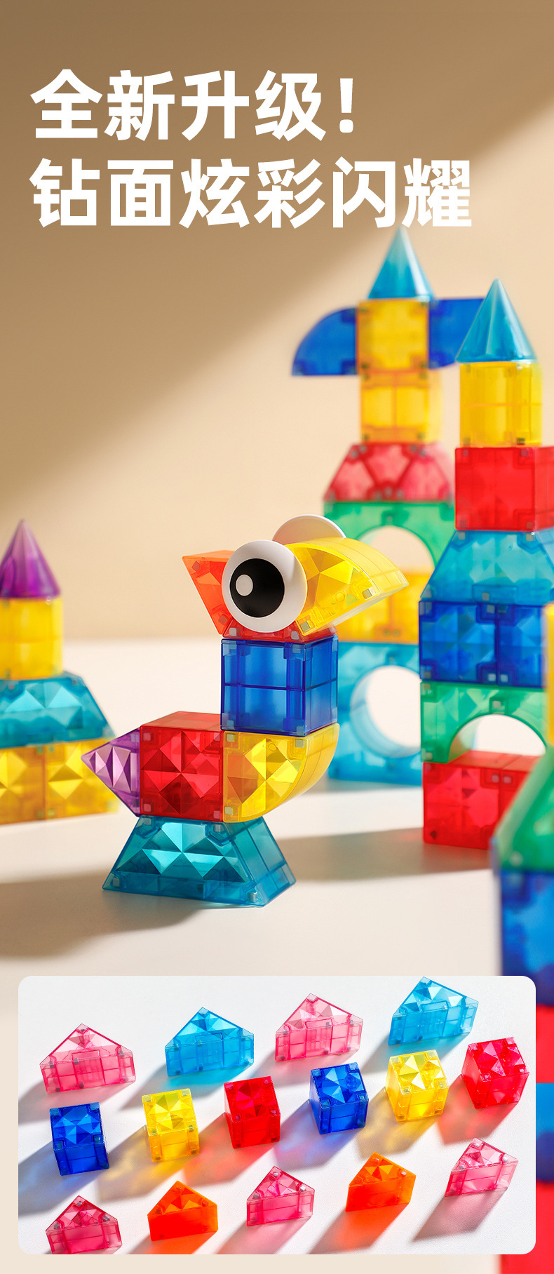 • 105피스 스타버스트 내추럴 컬러 다이아몬드 표면 자석 빌딩 블록
