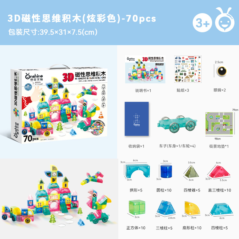 • 3D 자기적 사고 빌딩 블록 - 다채로운 70개