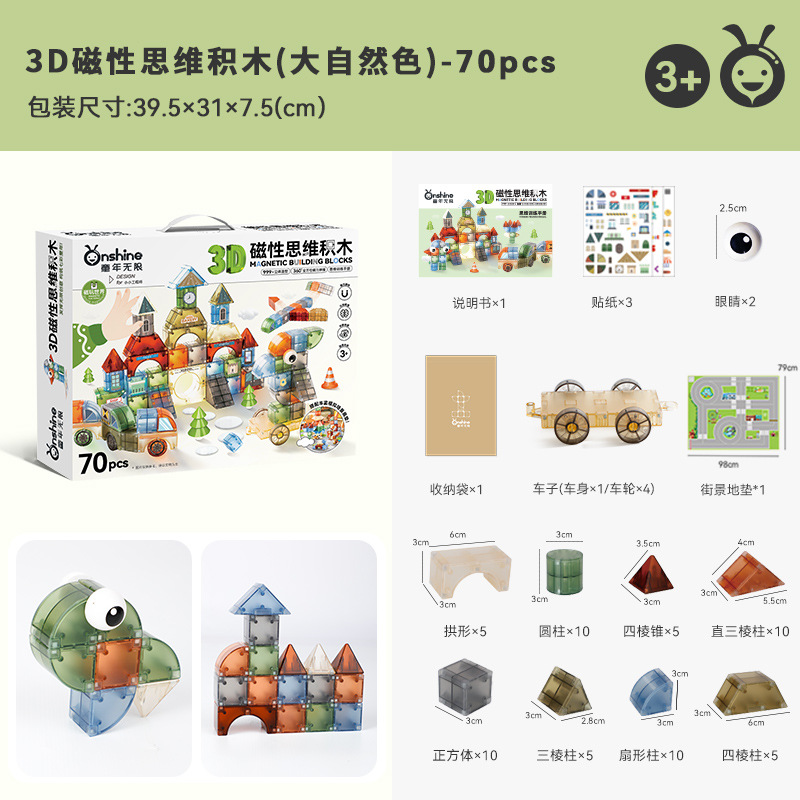 • 3D 자기 사고 빌딩 블록 - 내추럴 컬러 70개