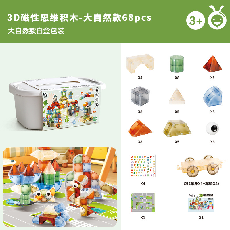 • 3D 자기사고 빌딩블록 - 내추럴 컬러 68 (수납박스)