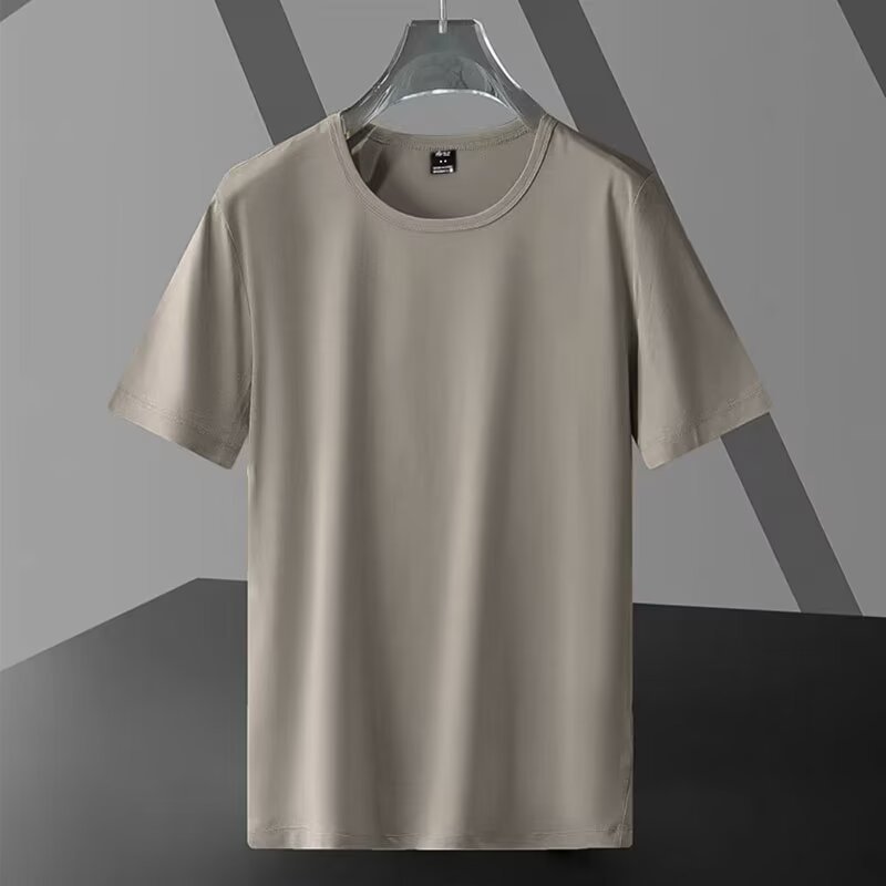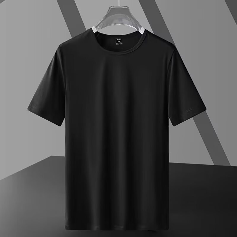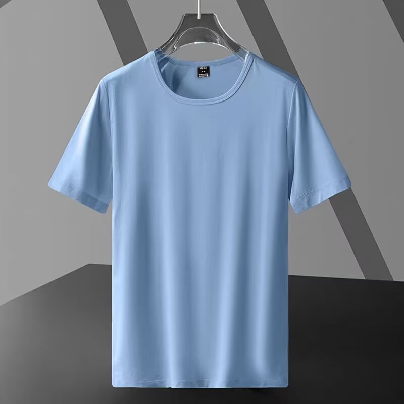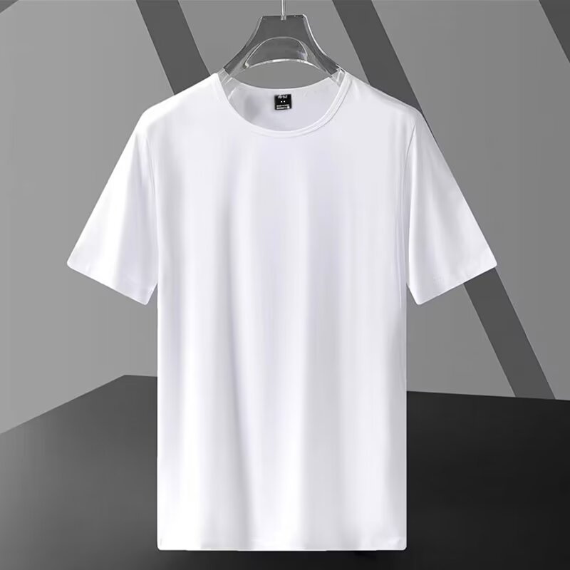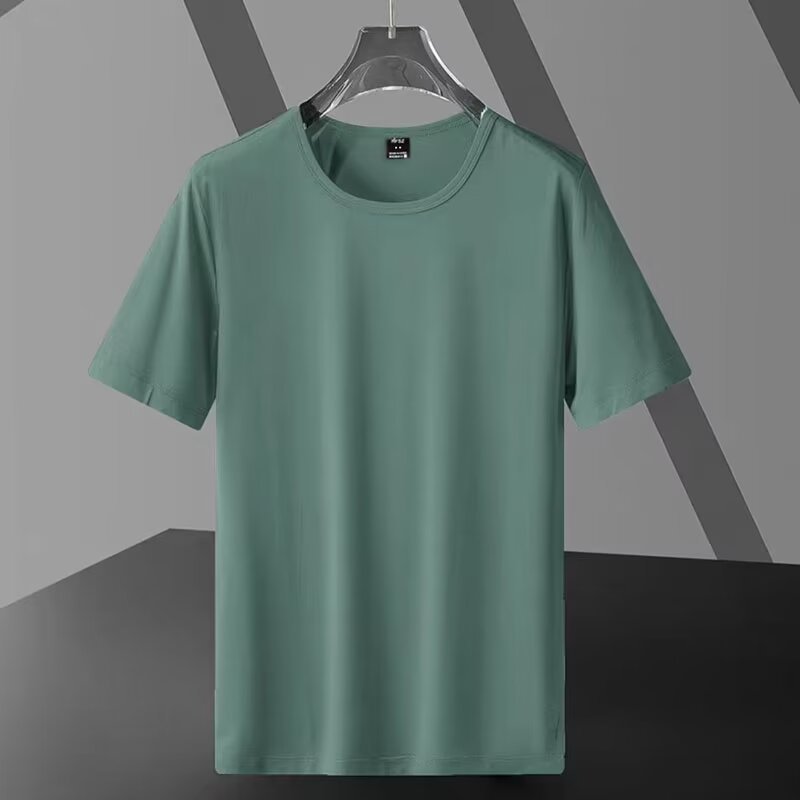 남성용 솔리드 컬러 여름 플러스 사이즈 지방 남성용 반팔 크루 넥 티셔츠 광고 셔츠 루즈 캐주얼 올 매치 탑 스몰 셔츠스토어 가기