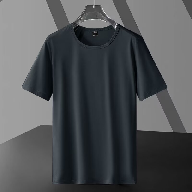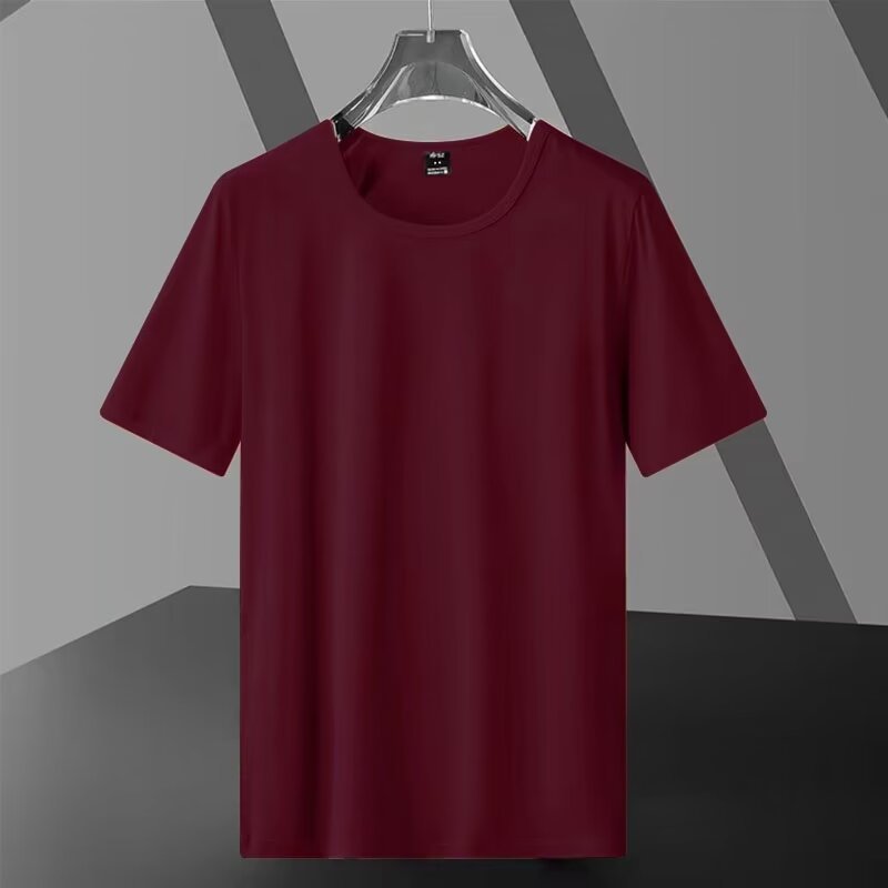 남성용 솔리드 컬러 여름 플러스 사이즈 지방 남성용 반팔 크루 넥 티셔츠 광고 셔츠 루즈 캐주얼 올 매치 탑 스몰 셔츠