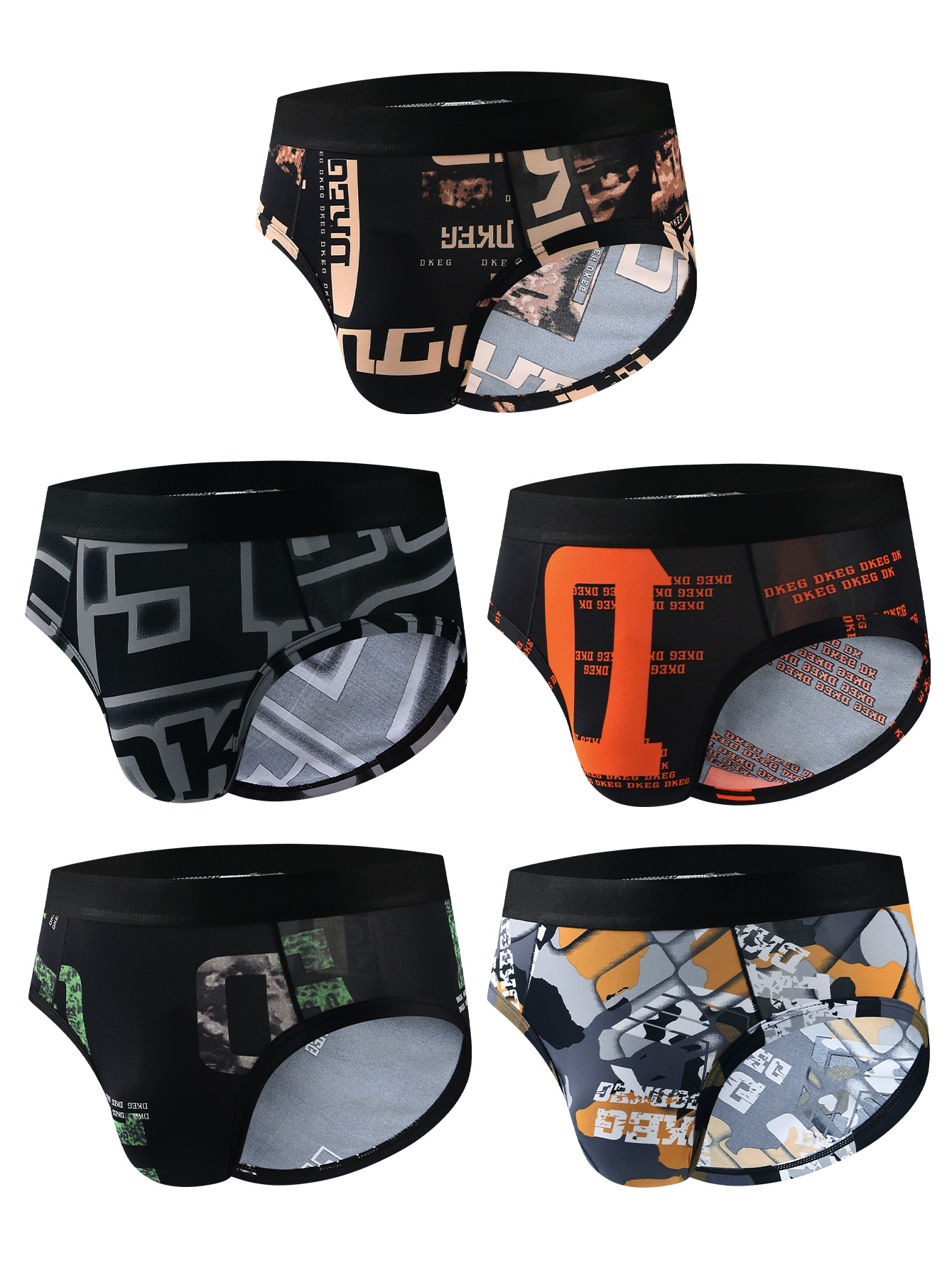 DKEG 트렌디 프린트 아이스 실크 원피스 남성 속옷 3D 스테레오 백 뽕나무 박테리아 브리프 남성 속옷