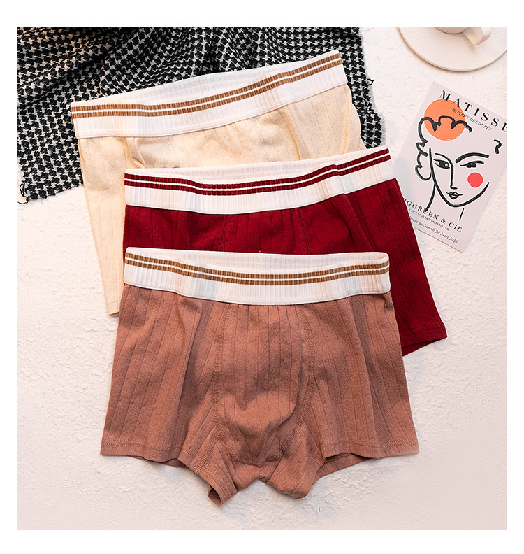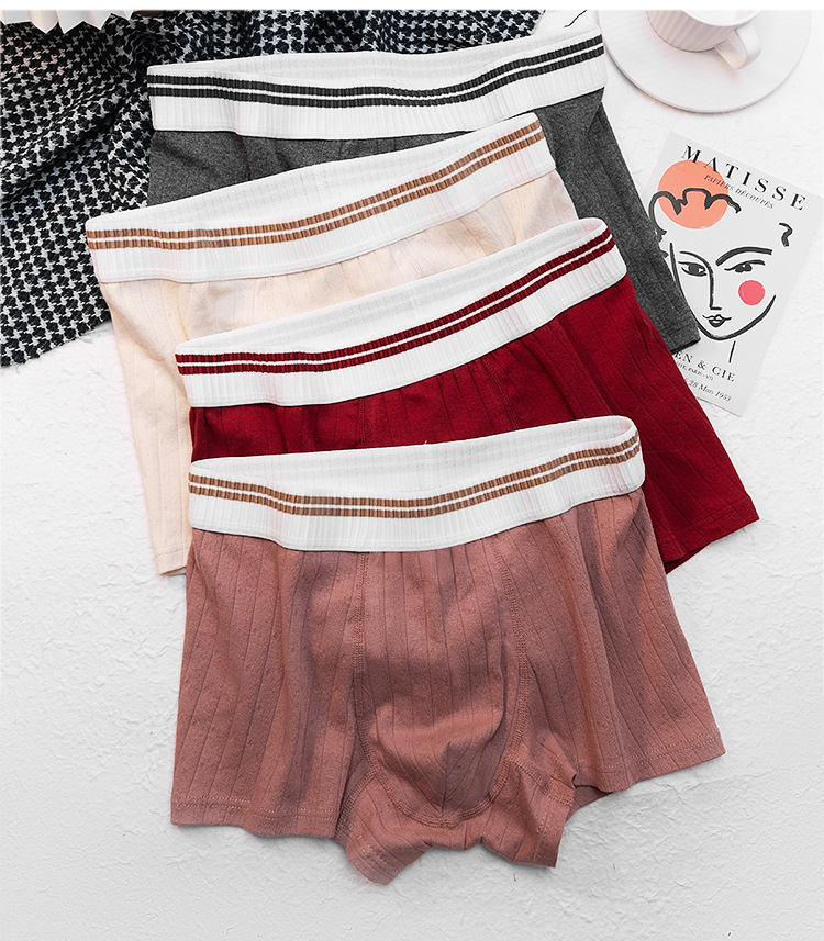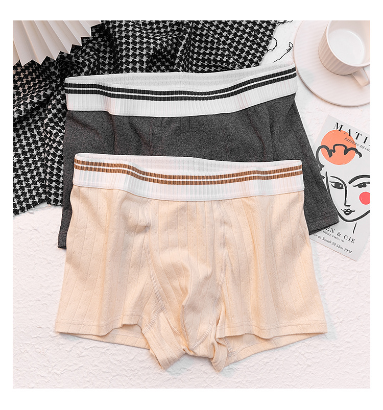 아메리칸 스타일 칼리지 스타일 줄무늬 남성 속옷 피부 친화적 인 편안한 소년 복서 자카드 중간 허리 통기성 복서 반바지스토어 가기