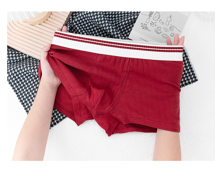 아메리칸 스타일 칼리지 스타일 줄무늬 남성 속옷 피부 친화적 인 편안한 소년 복서 자카드 중간 허리 통기성 복서 반바지