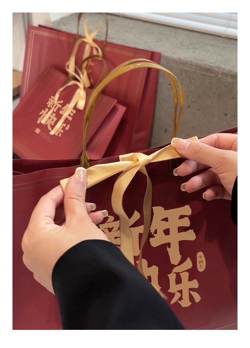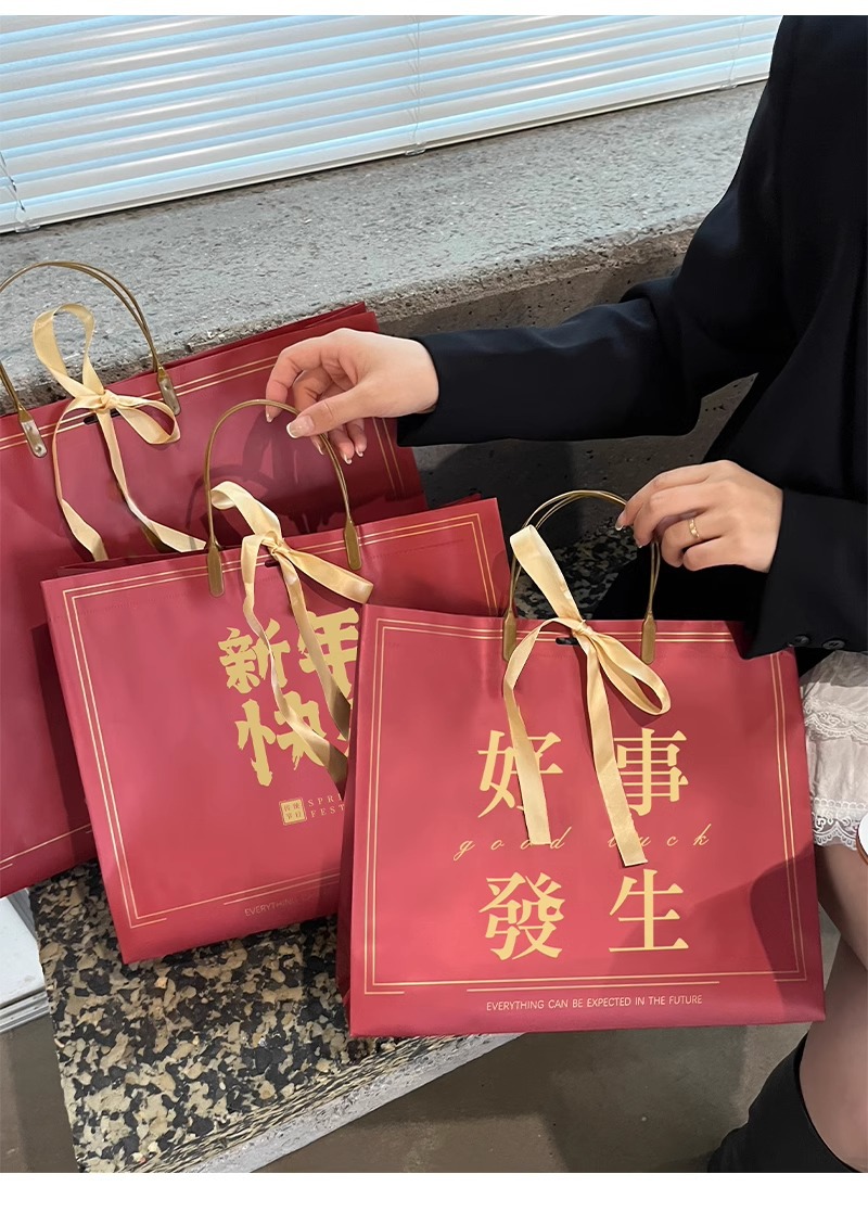 • 중국 레드 - 새해 복 많이 받으세요 [리본 보내기], 중간 크기: 32*27*11cm, PP 가방 3개
