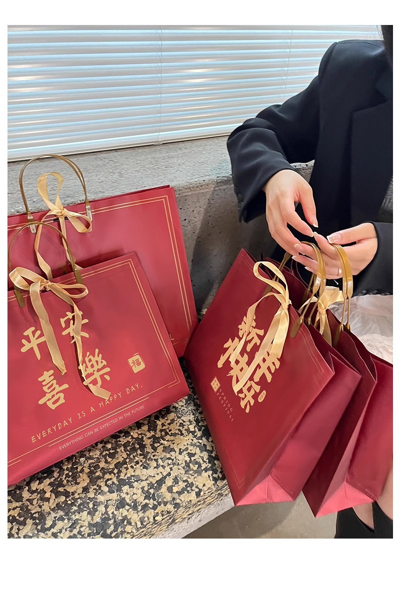 • 차이니즈 레드 - 좋은 일이 생긴다 [리본 보내기], 대형 사이즈: 44*33*12cm, PP 가방 3개