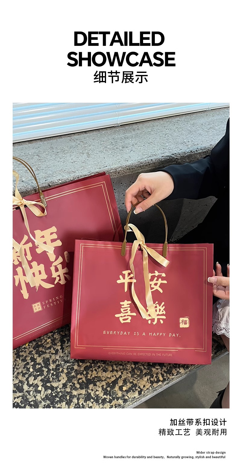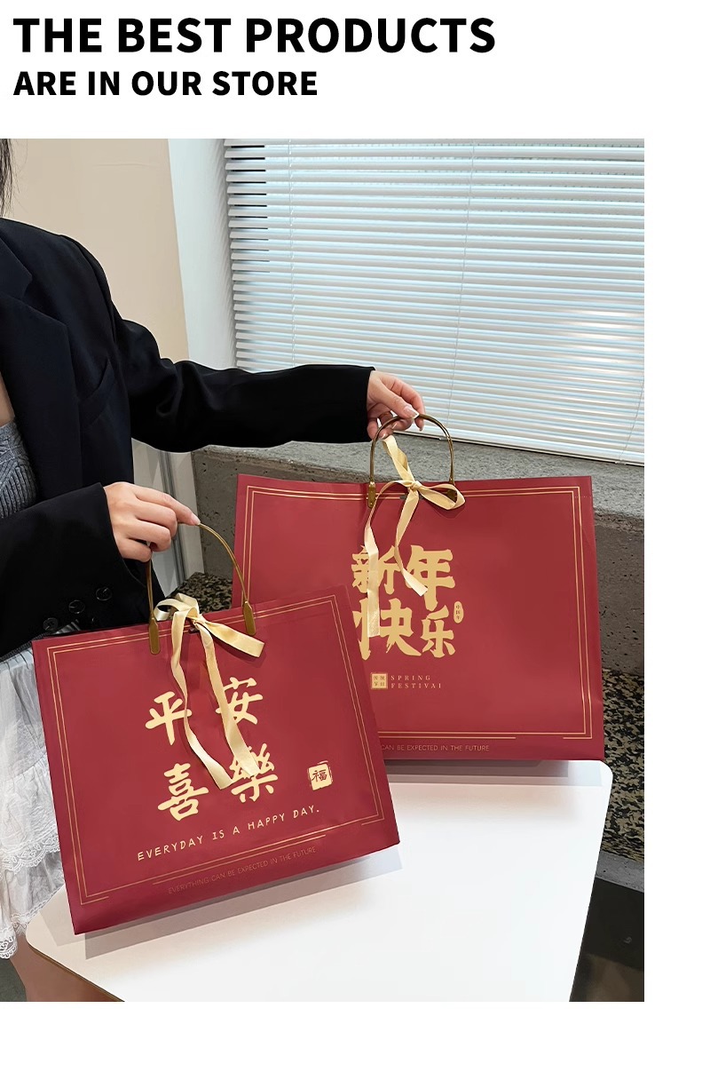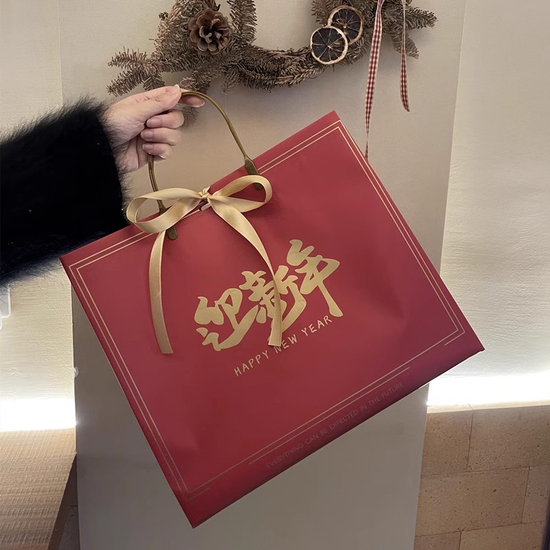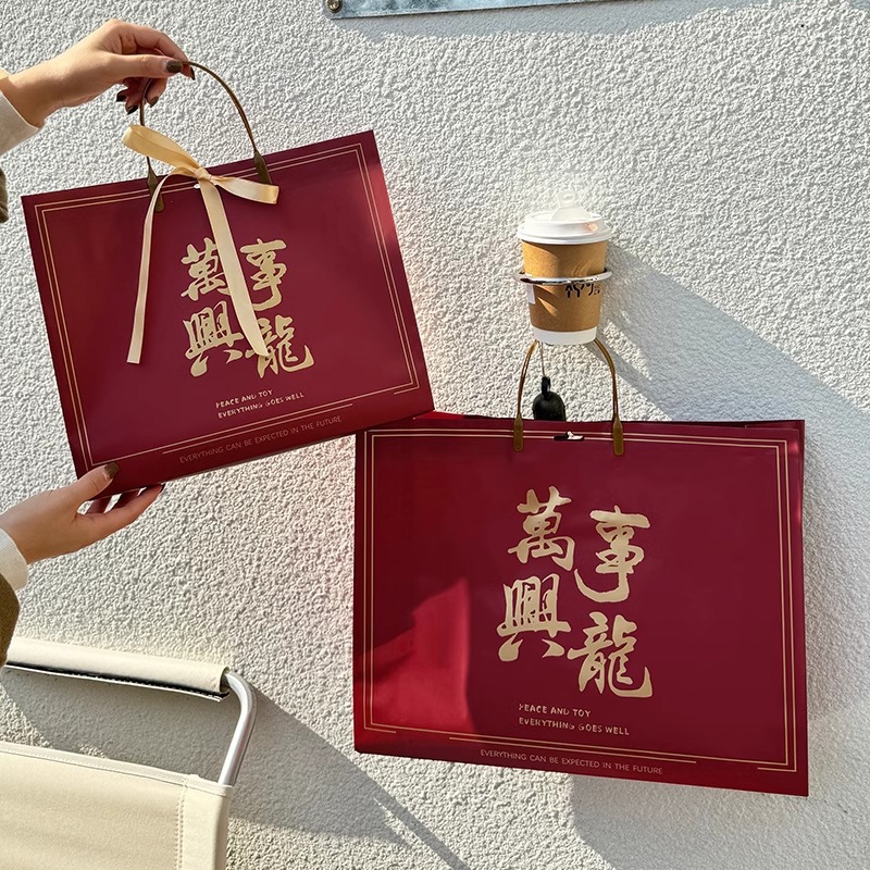 새해 포춘 빨간 선물 가방 의류 매장 핸드백 휴일 동반 선물 선물 포장 쇼핑백 도매스토어 가기
