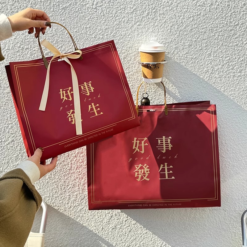 새해 포춘 빨간 선물 가방 의류 매장 핸드백 휴일 동반 선물 선물 포장 쇼핑백 도매