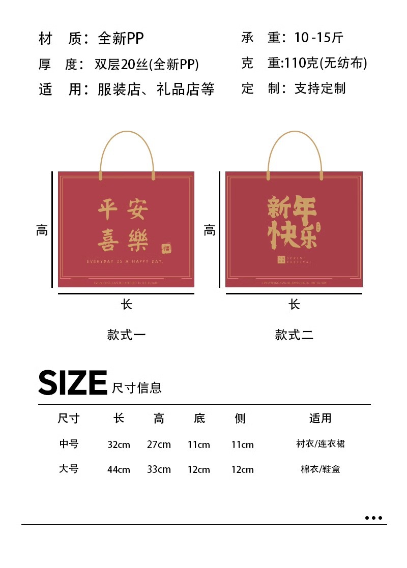 • 새해를 맞이하세요 [리본 보내기], 중간 크기: 32*27*11cm, PP 가방 50개