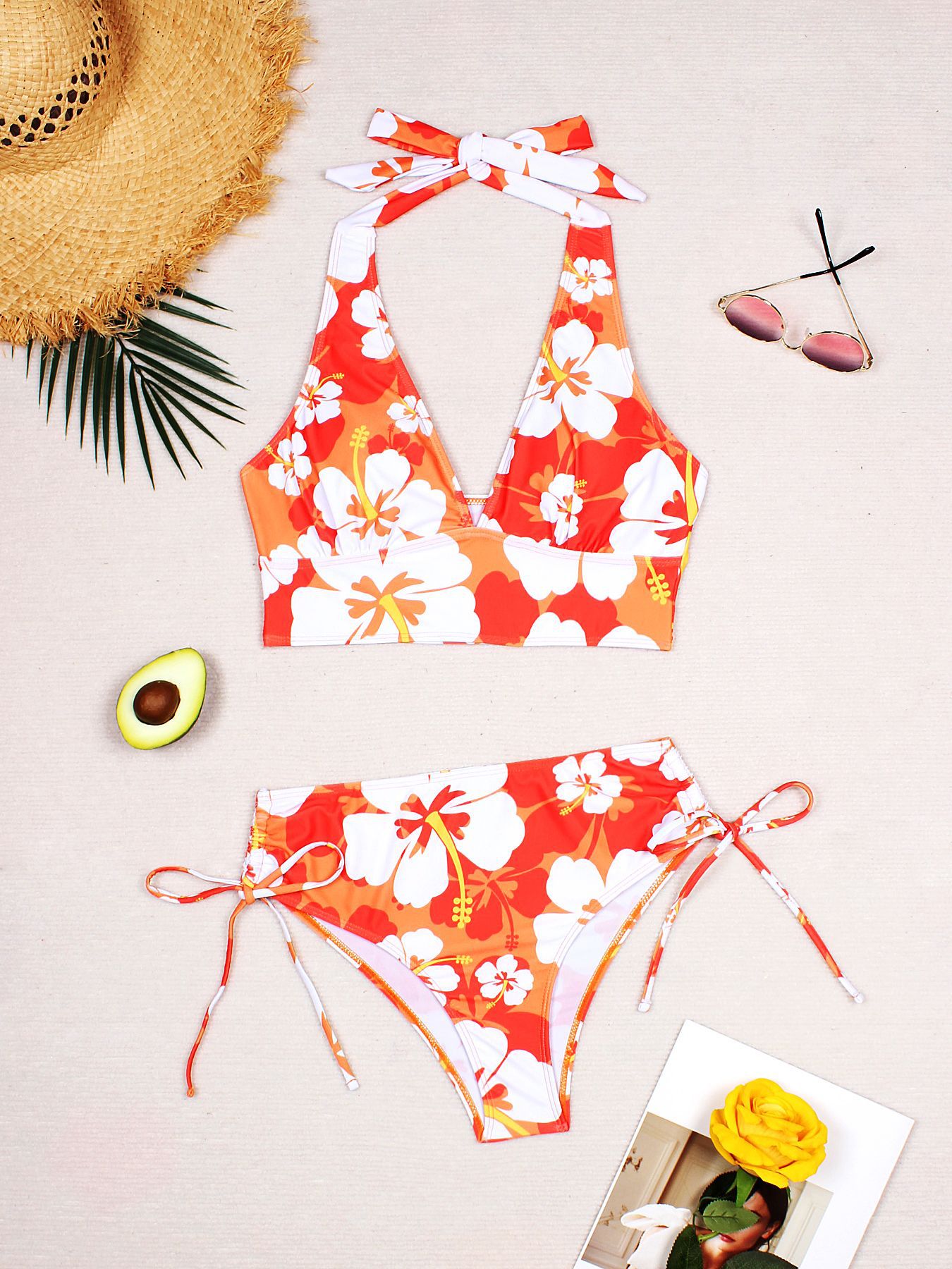 유럽과 미국의 섹시한 슬림 2025 새로운 여성의 인쇄 높은 허리 비키니 분할 백리스 수영복스토어 가기