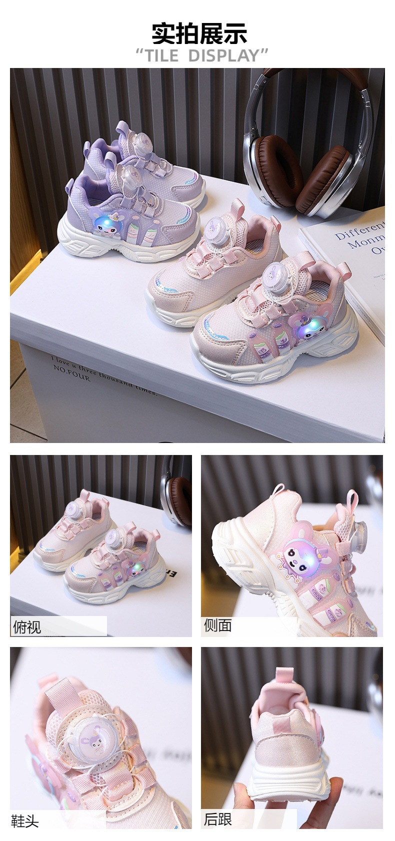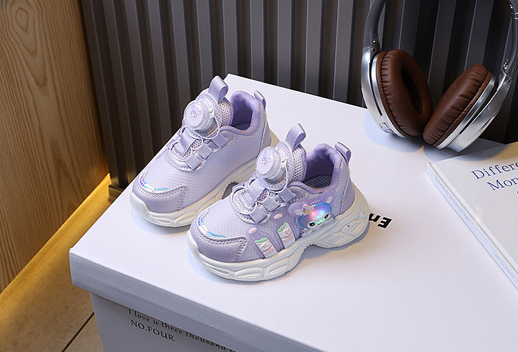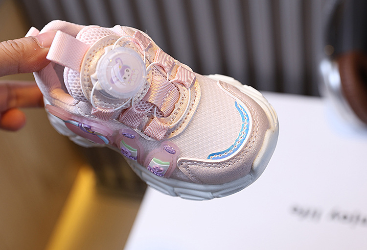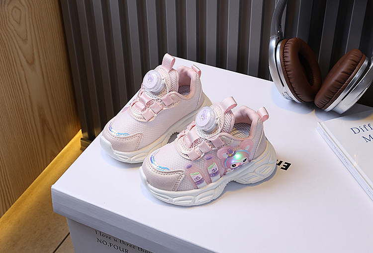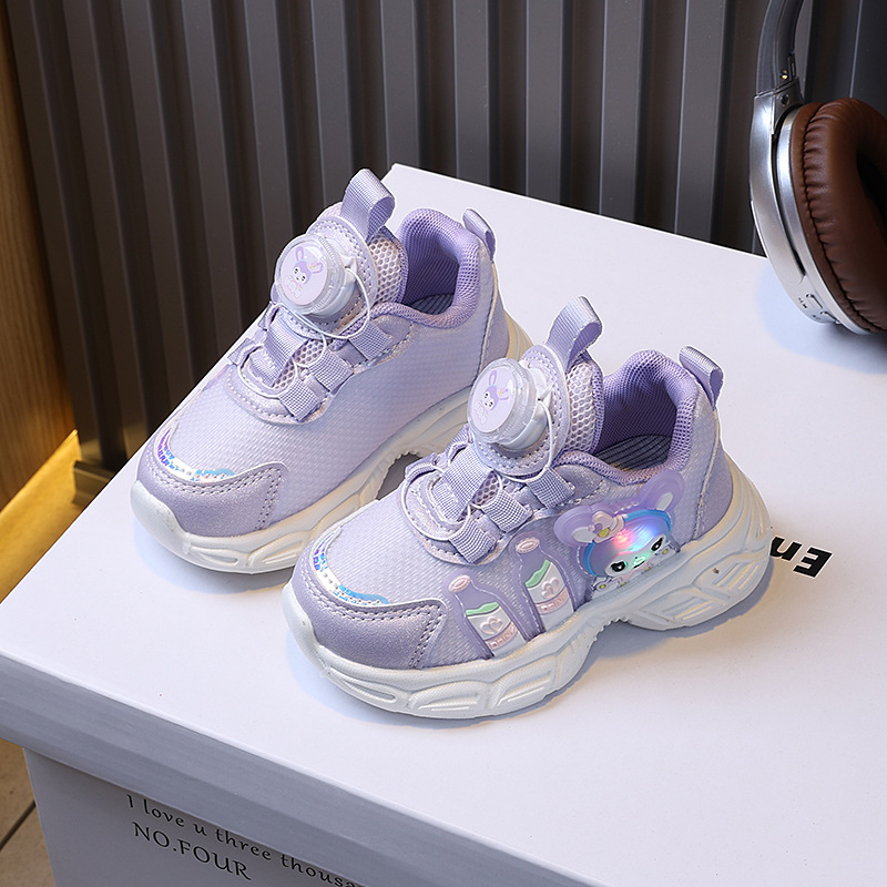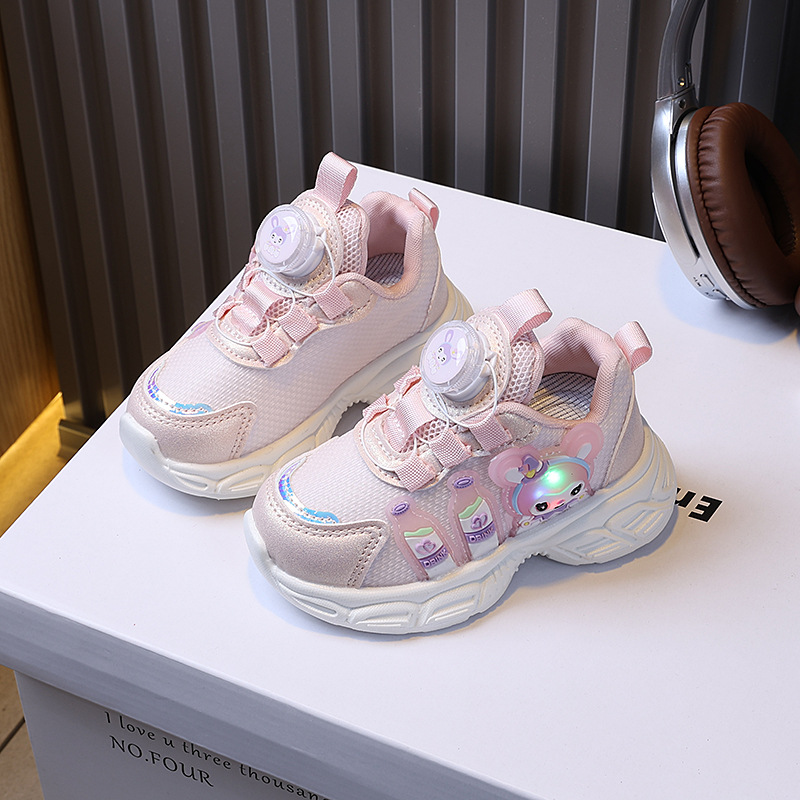 소녀 운동화 봄 새로운 어린이 토레 신발 회전 버클 만화 빛나는 빛 신발 소프트 단독 통기성 러닝 슈즈