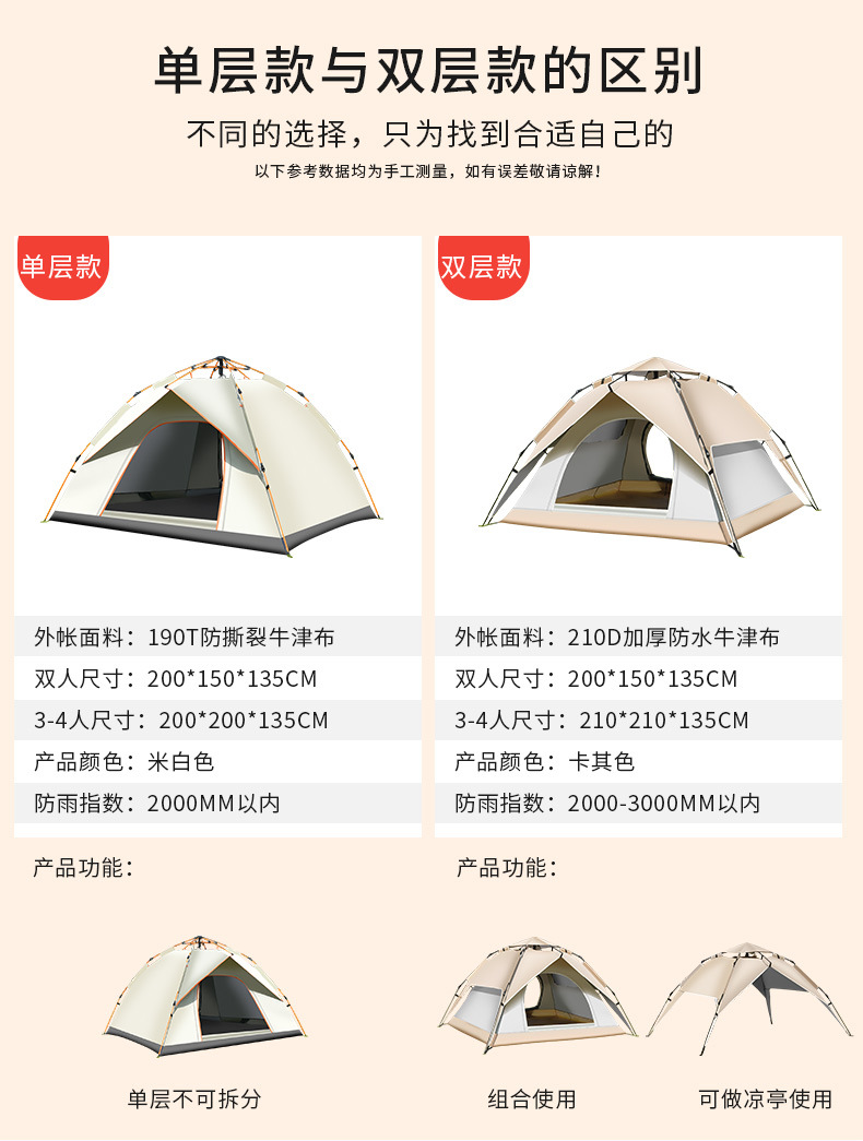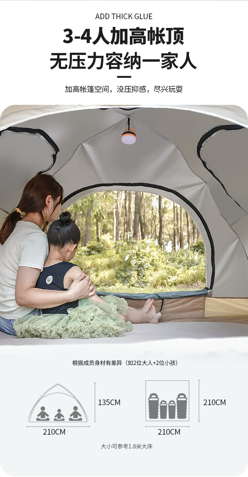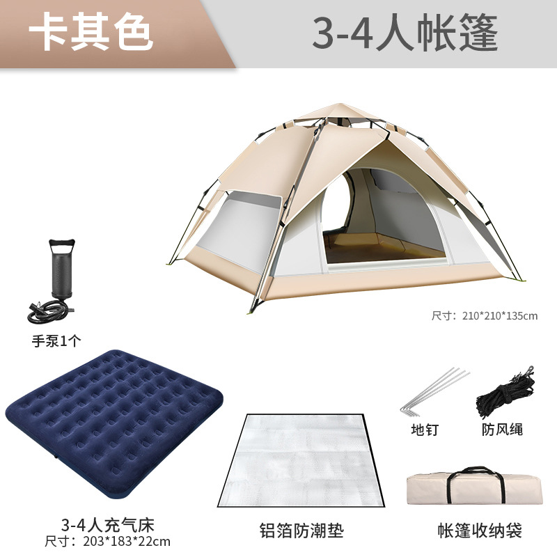 텐트 야외 3-4 명 완전 자동 2 명 야외 캠핑 어린이 캠핑 공원 비방 휴대용 빠른 오프닝