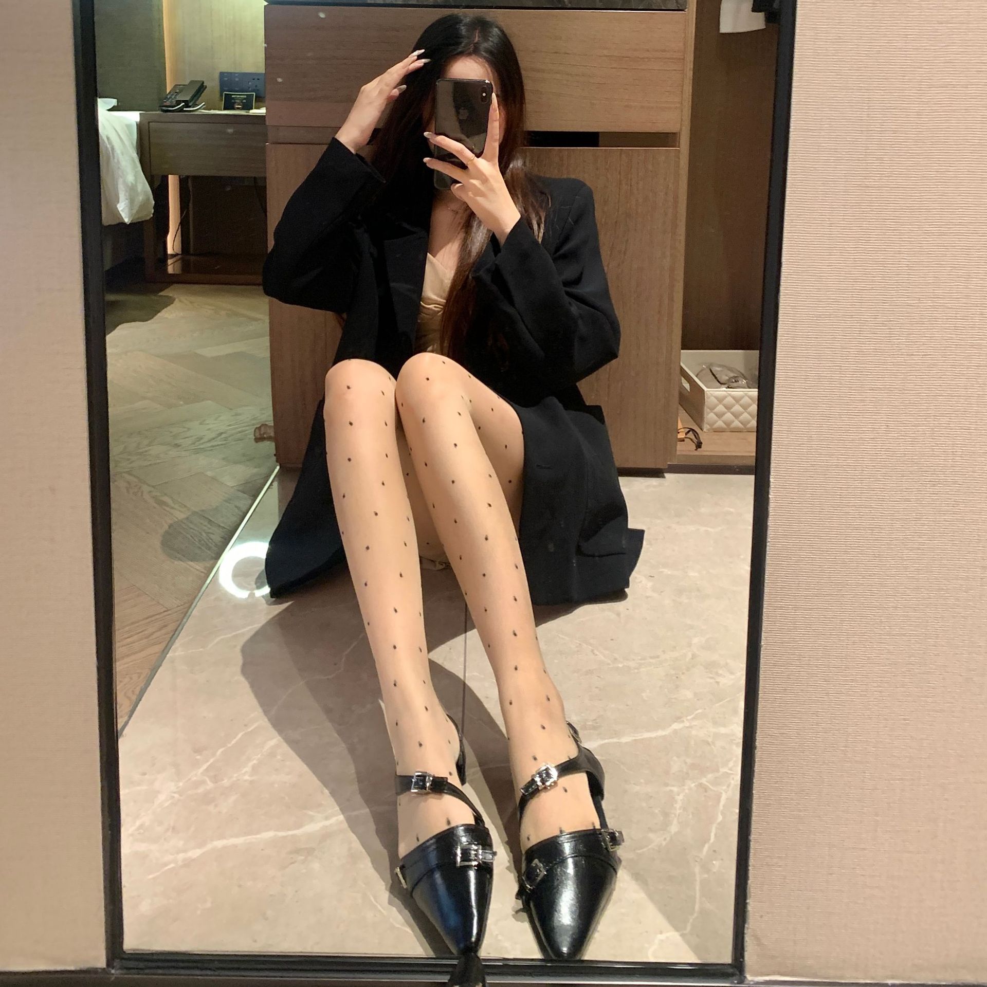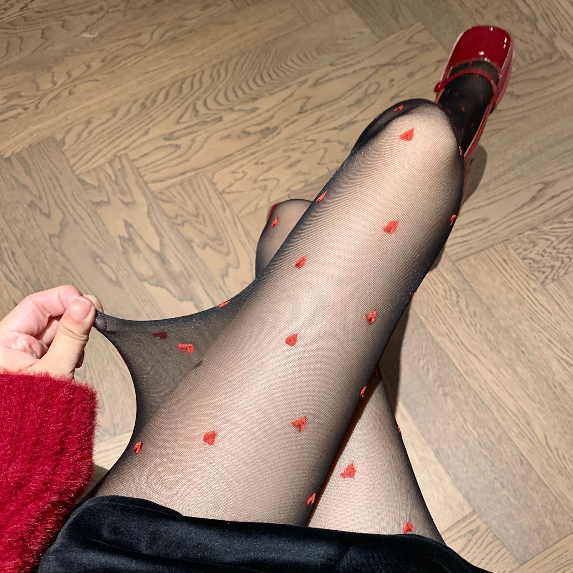 폴카 도트 사랑 하트 코어 스핀 실크 자카드 실크 스타킹 왕실 자매 기질 순수한 욕망 바람 얇은 섹시한 슬리밍 베이스 양말