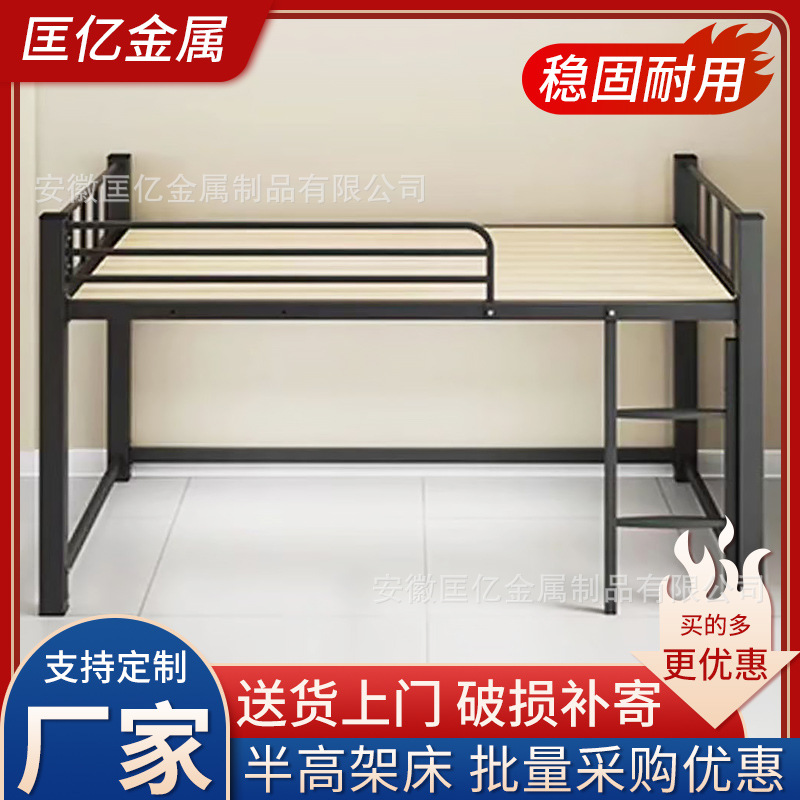 반 높이 침대 더블 싱글 간단한 철 프레임 침대 성인 반 높이 침대 어린이 침대 연철 아파트 침대 공장 도매스토어 가기