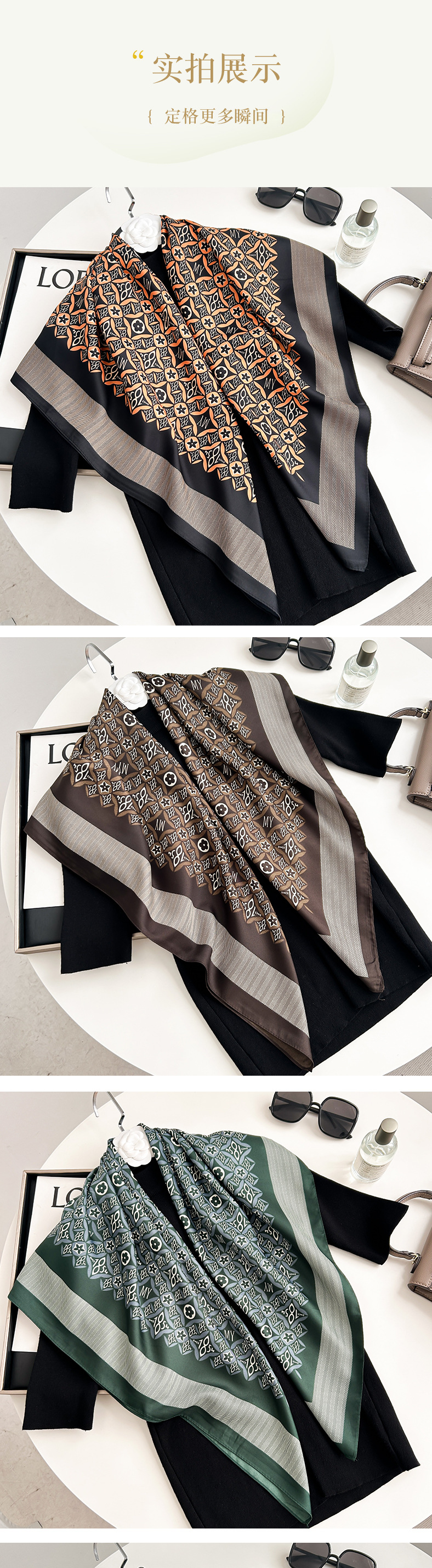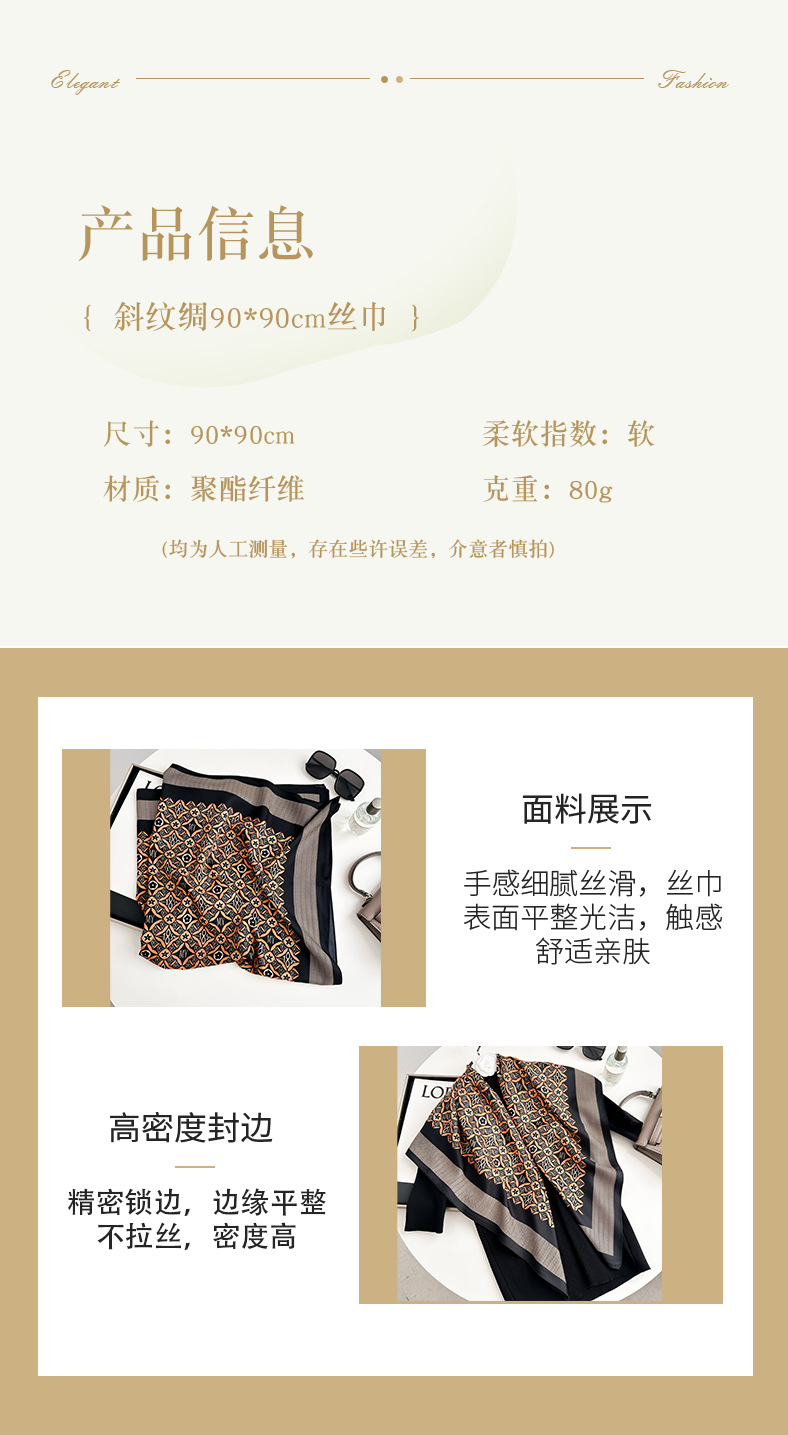 새로운 브랜드 패션 고급 트윌 90 스퀘어 스카프 통기성 헤드 스카프 하이 엔드 실크 올 매치 여성 실크 스카프