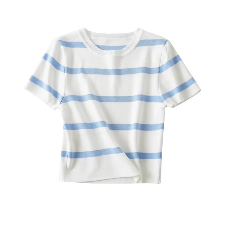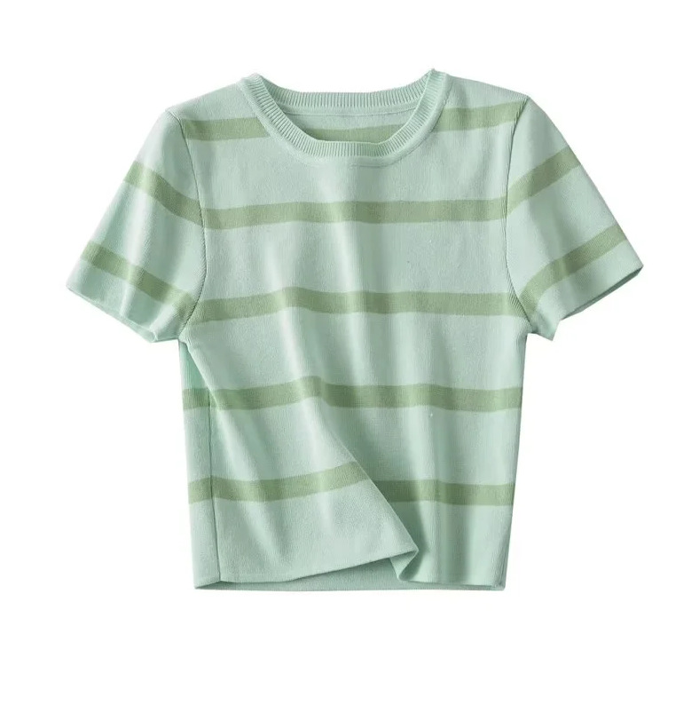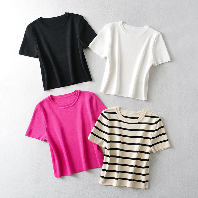 대외 무역 목록! 도매 유럽과 미국 스타일의 봄 새로운 유럽과 미국 스타일의 짧은 소매 라운드 넥 풀오버 아이스 실크 스웨터