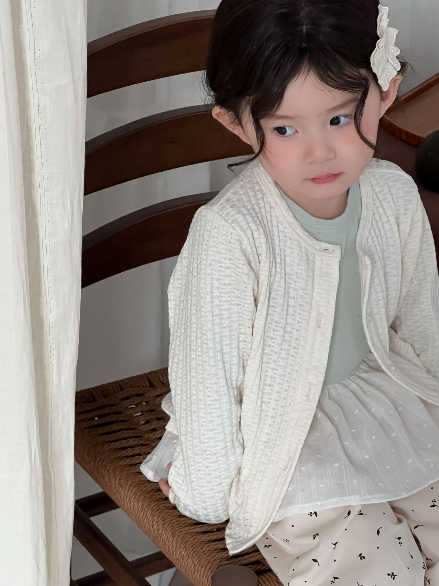 2025 봄 새로운 어린이 패치 레이스 자수 니트 카디건 소녀 한국 단색 긴 소매 코트