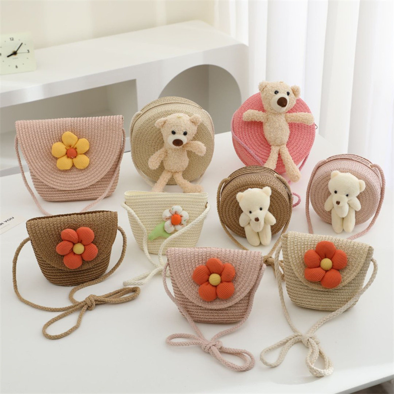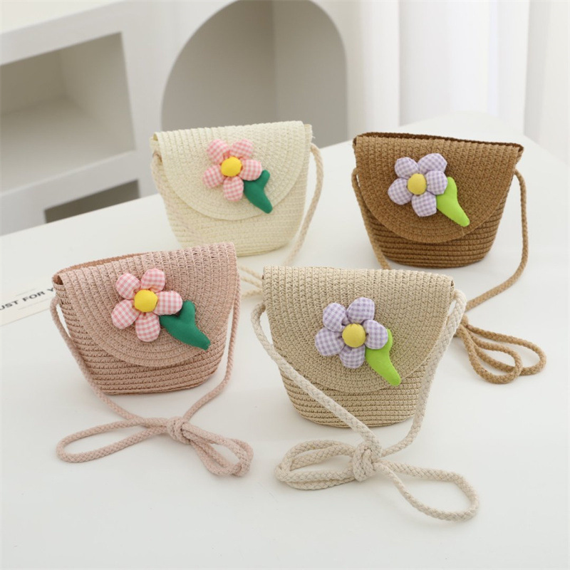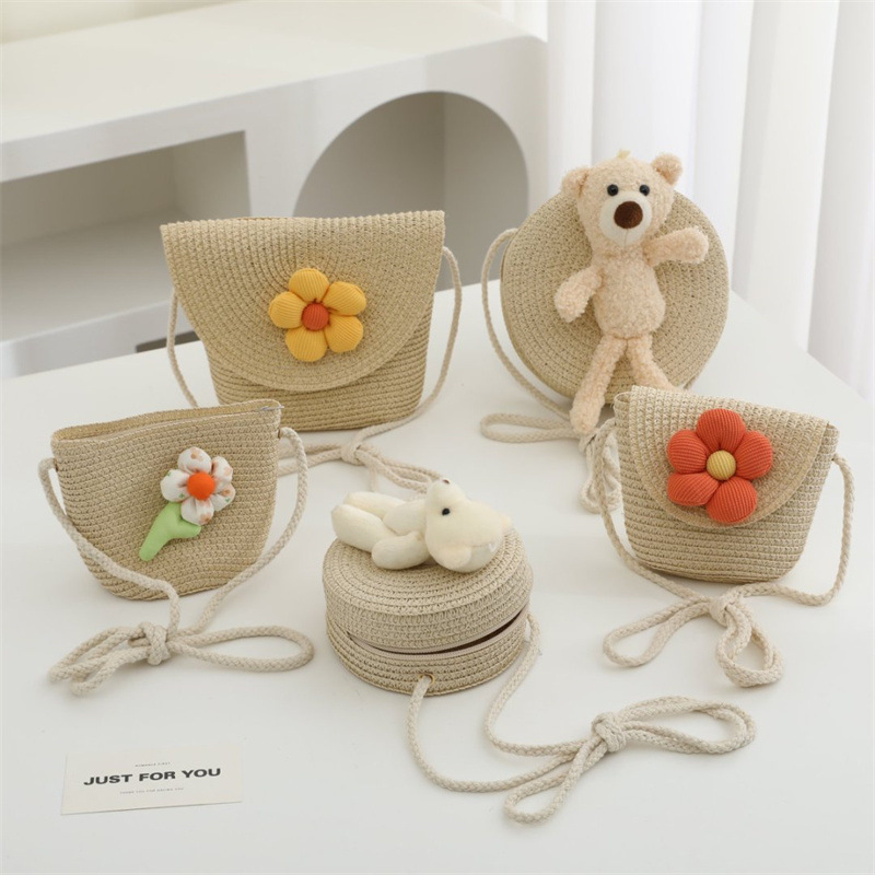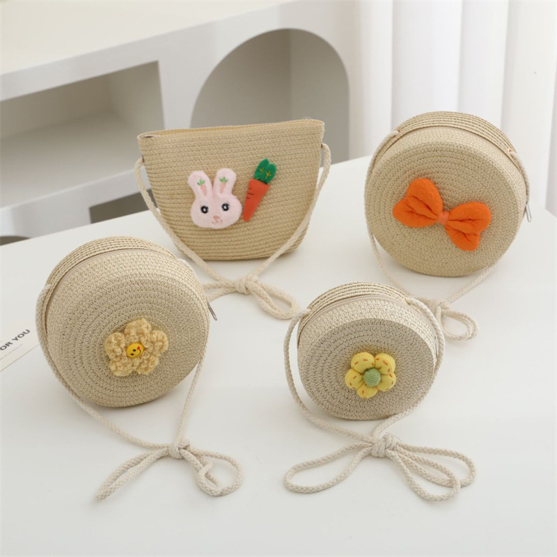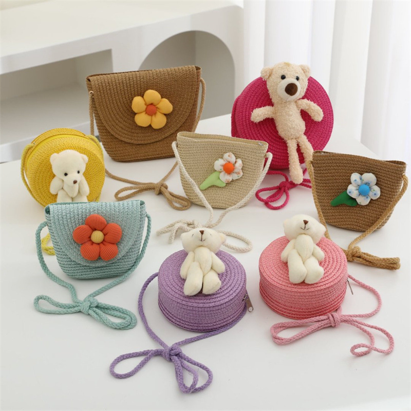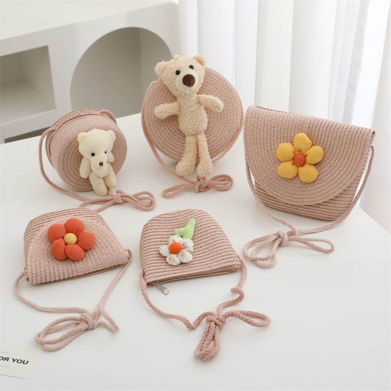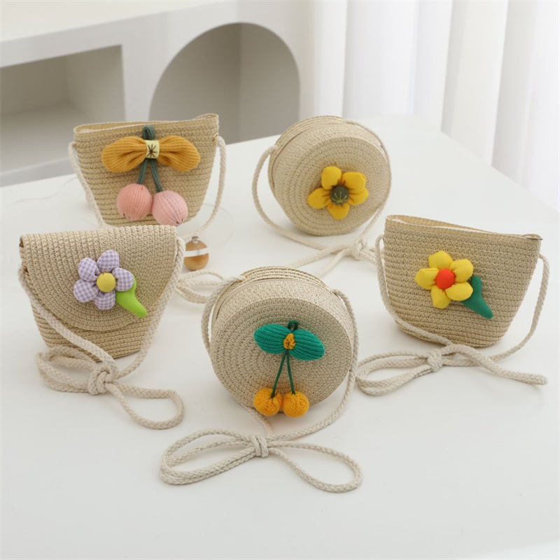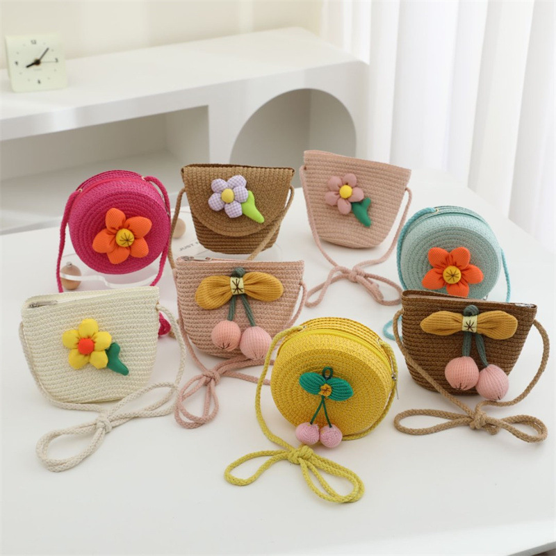 밀짚 가방 짠 가방 어린이 작은 가방 소녀 휴대 전화 슬렁 여름 여행 해변 관광 명소 동전 지갑 도매스토어 가기