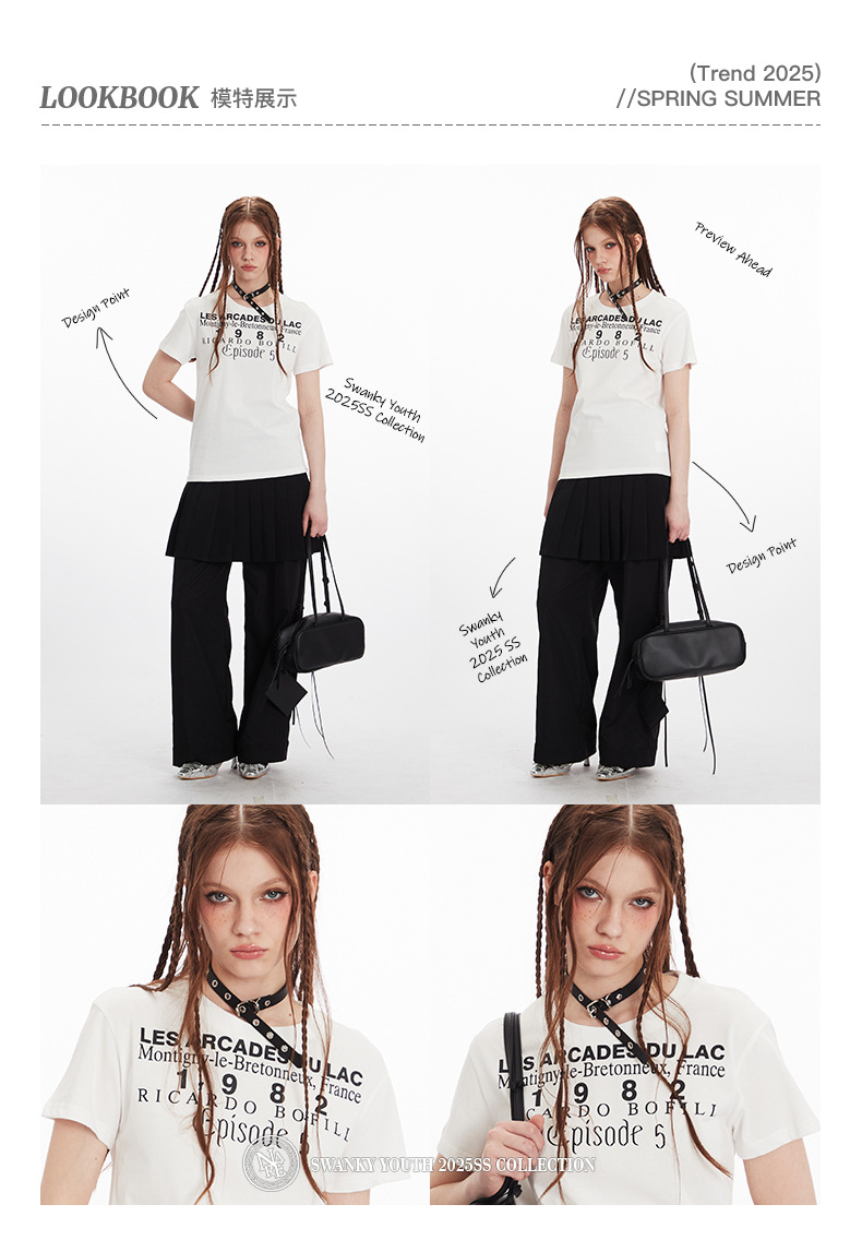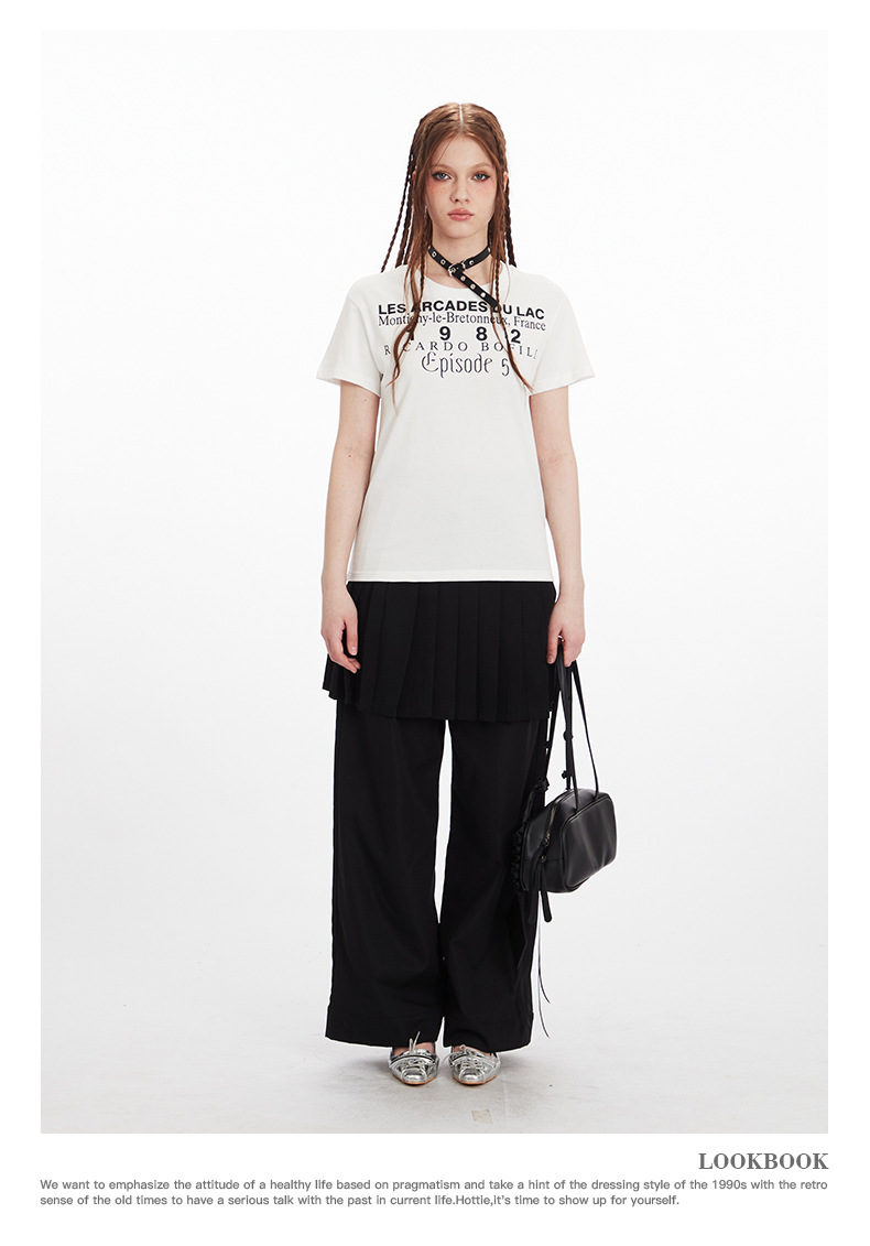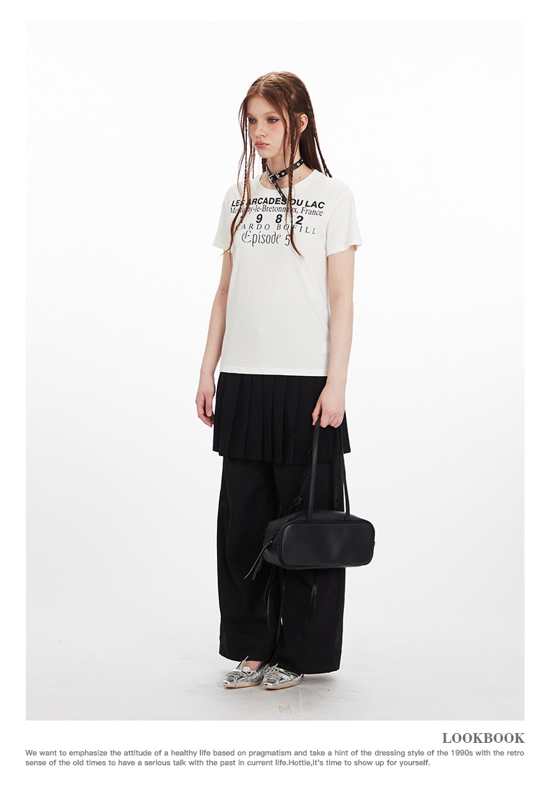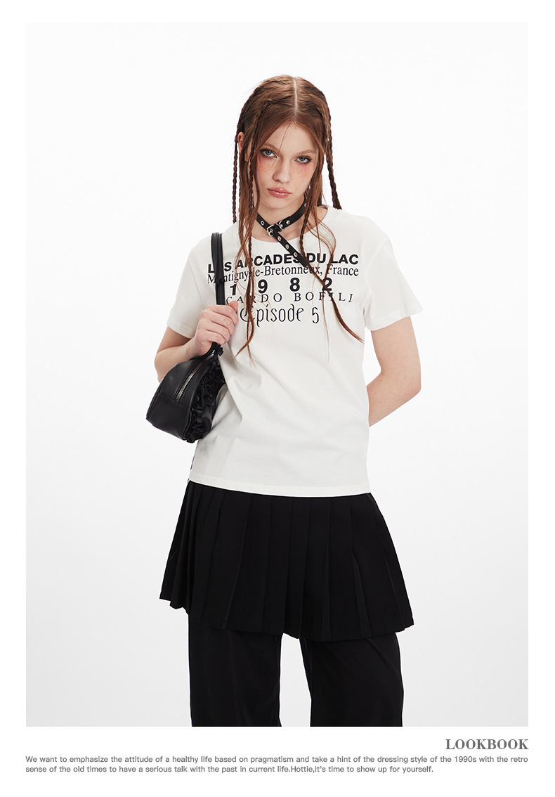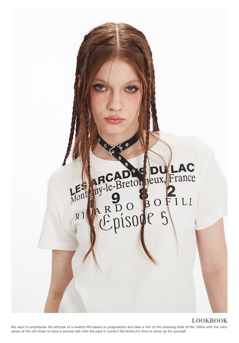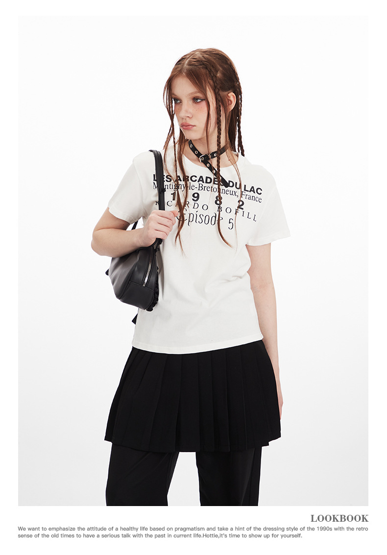 HeyHenry 2025 여름 뉴 숄더 아메리칸 스타일 레트로 스트리트 레터 반팔 티셔츠 여성용 라운드 넥 탑