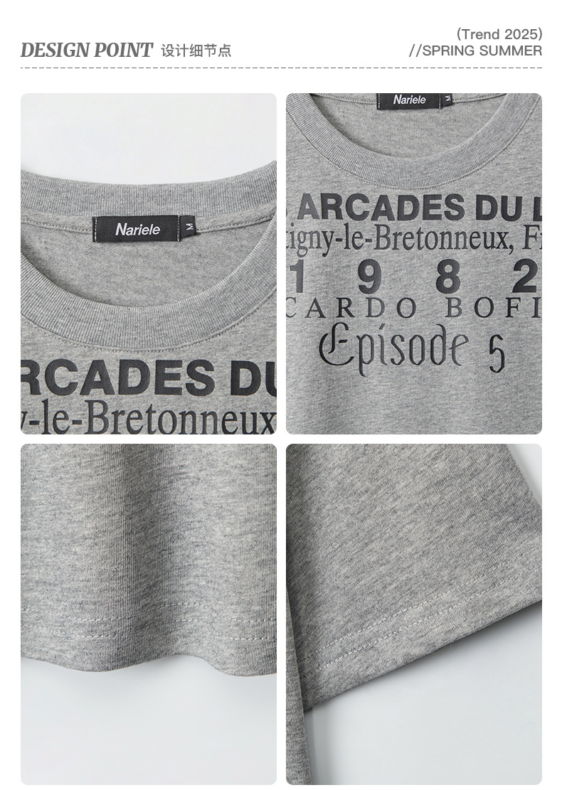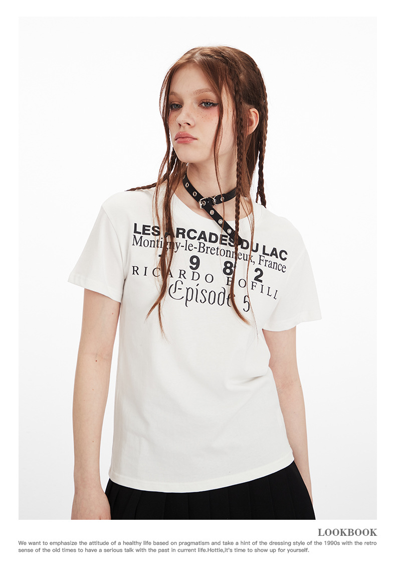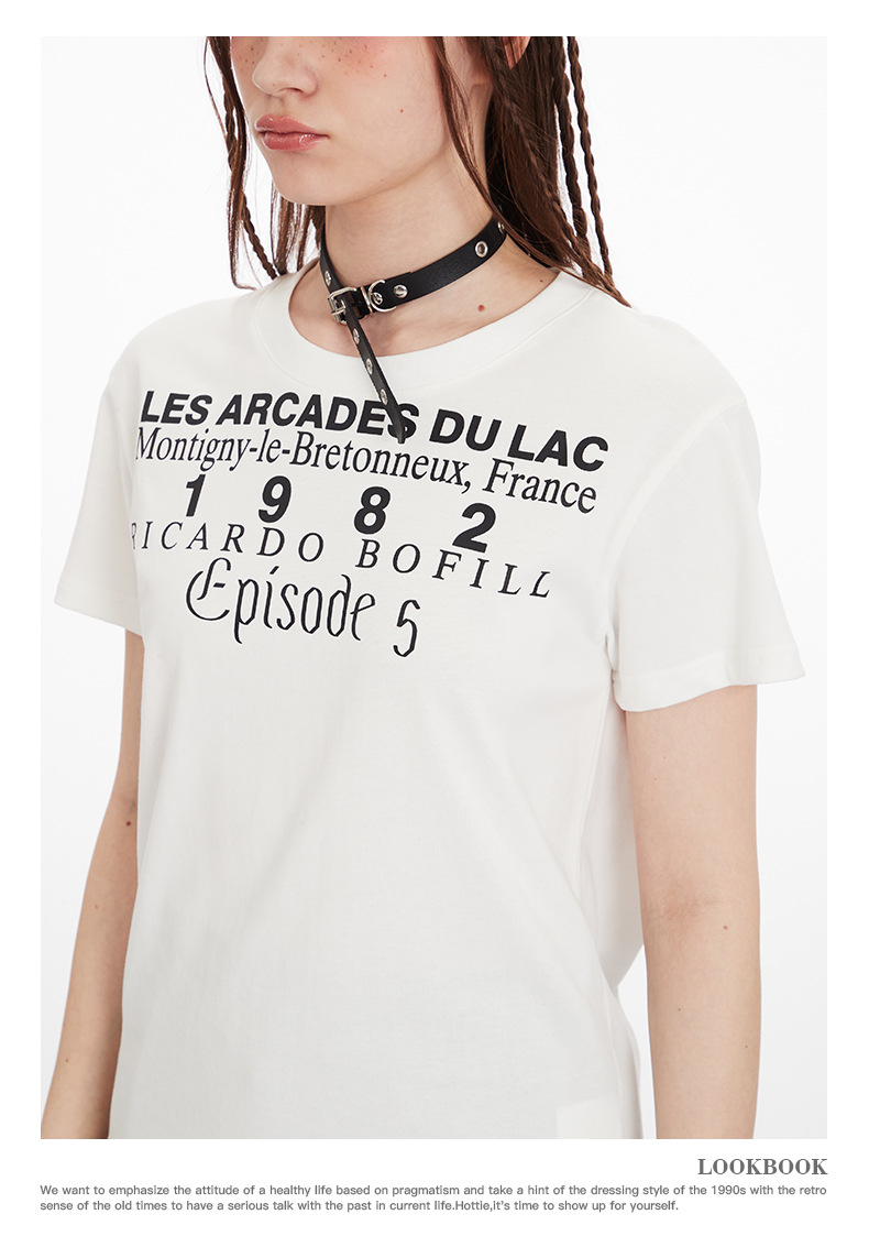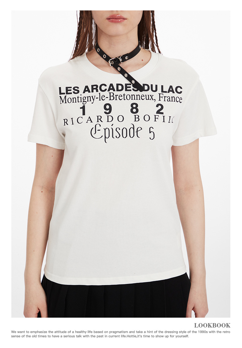 HeyHenry 2025 여름 뉴 숄더 아메리칸 스타일 레트로 스트리트 레터 반팔 티셔츠 여성용 라운드 넥 탑스토어 가기