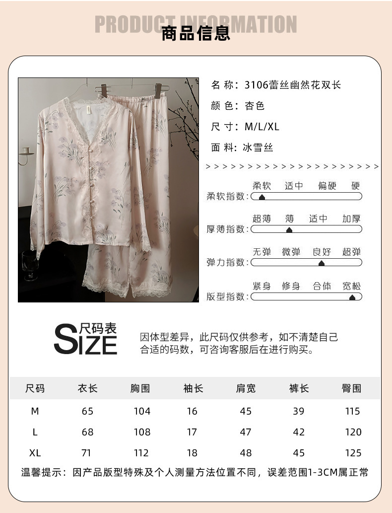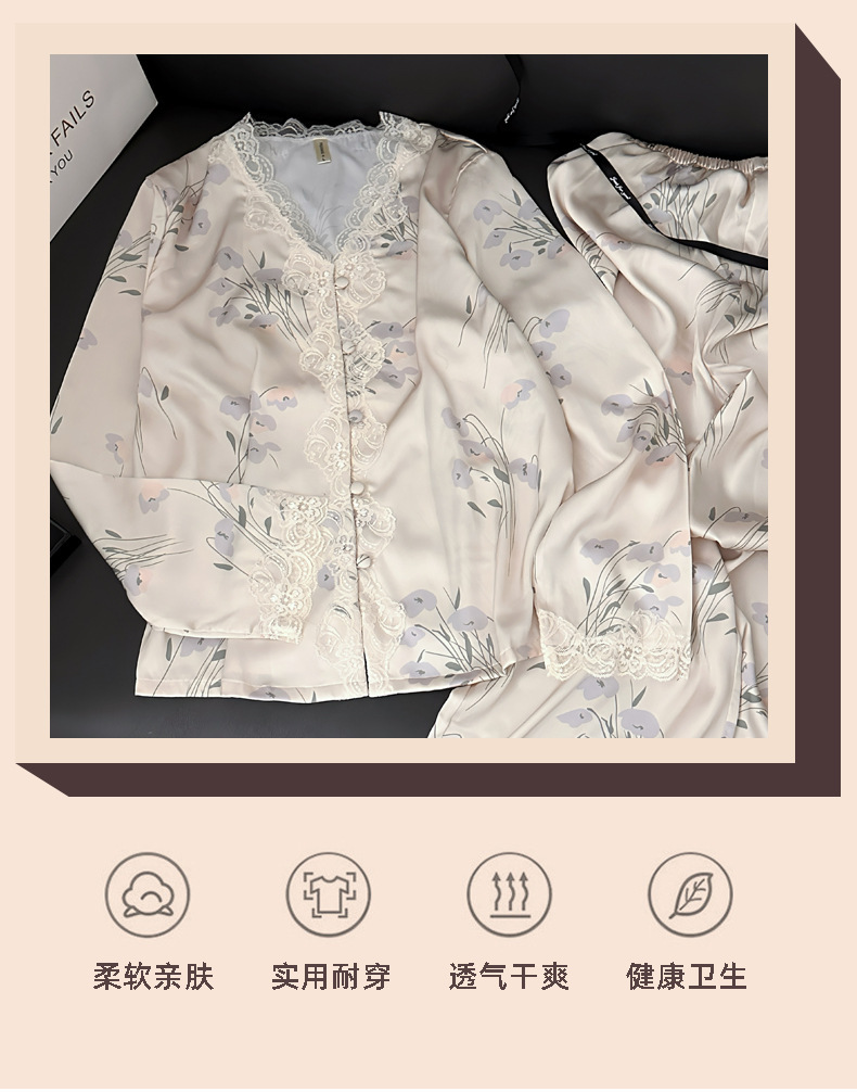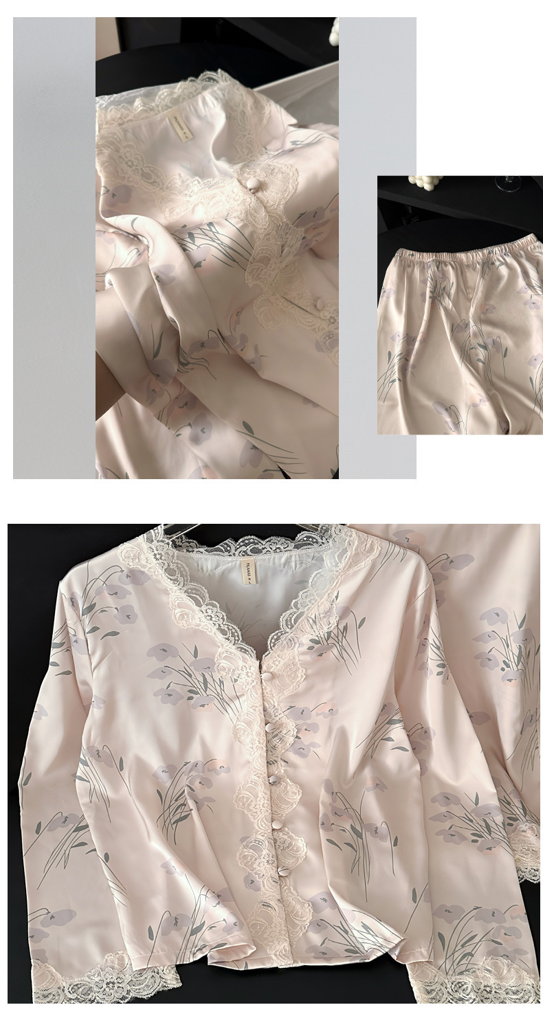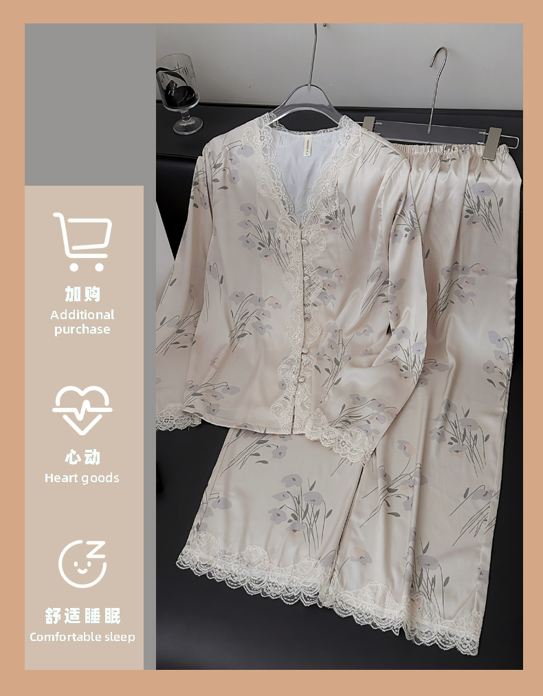 레이스 유란 꽃 아이스 실크 파자마 여성의 봄과 가을 착용 기질 맞춤형 플러스 사이즈 긴 소매 홈 의류 세트스토어 가기