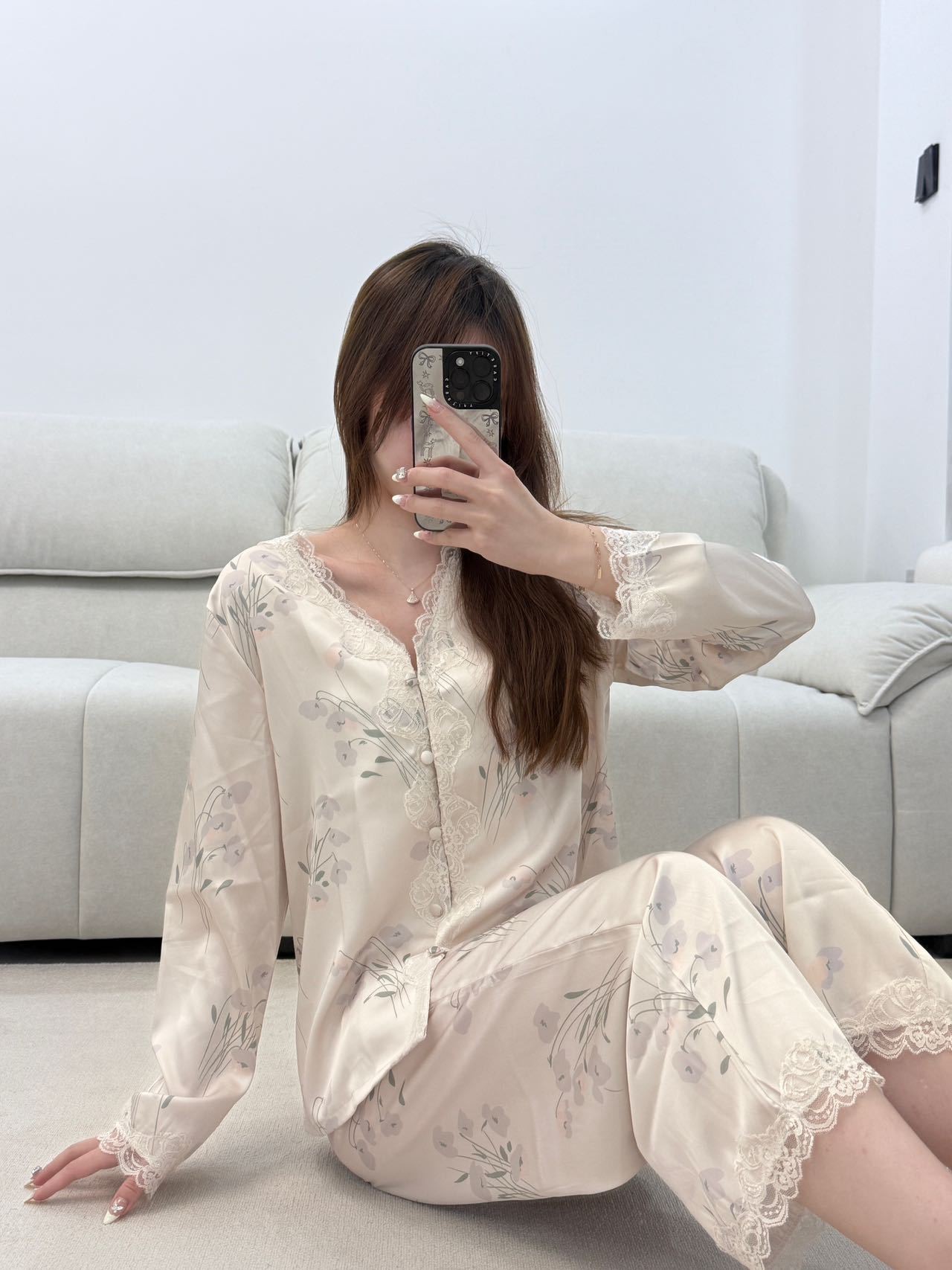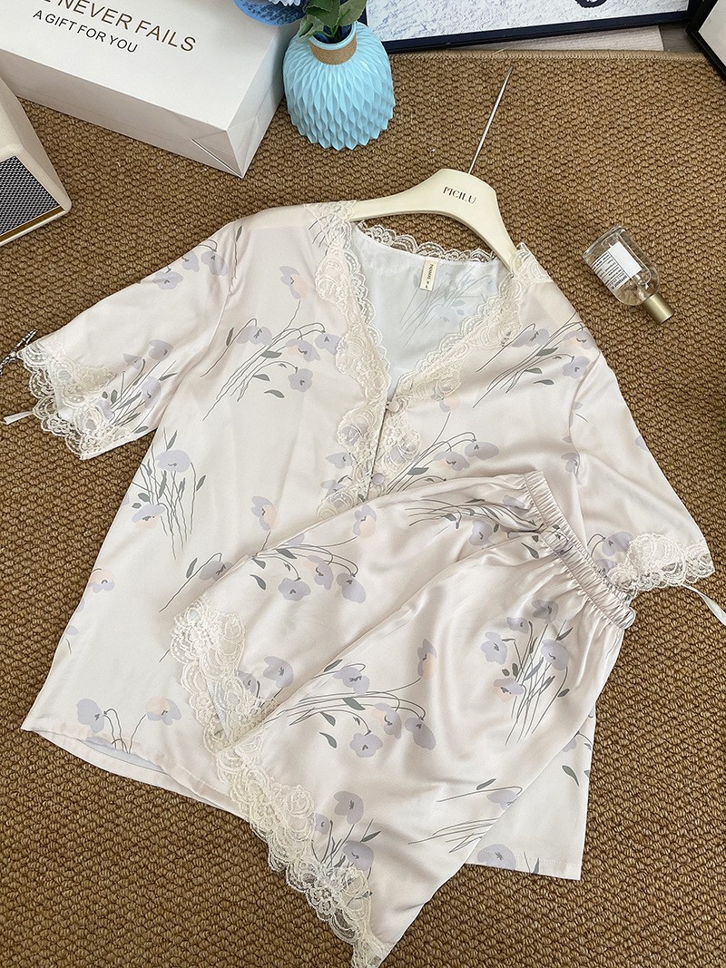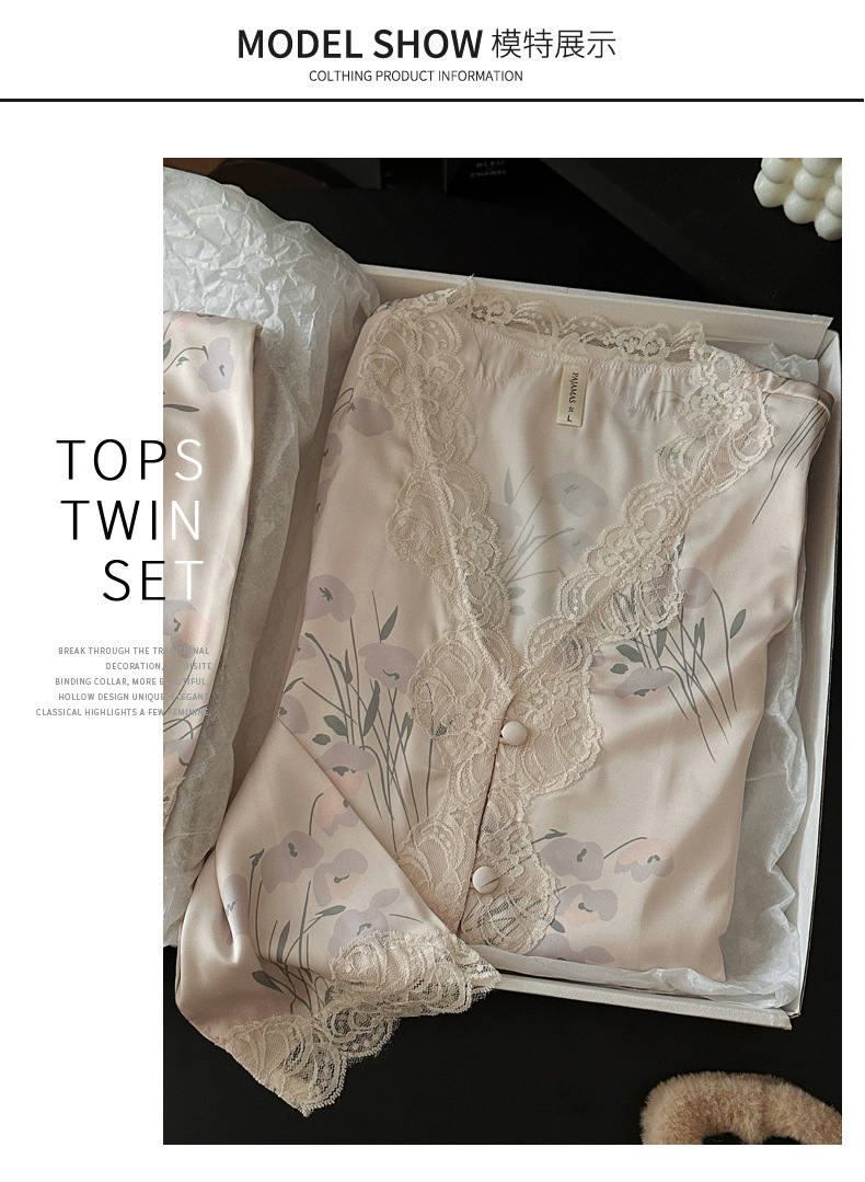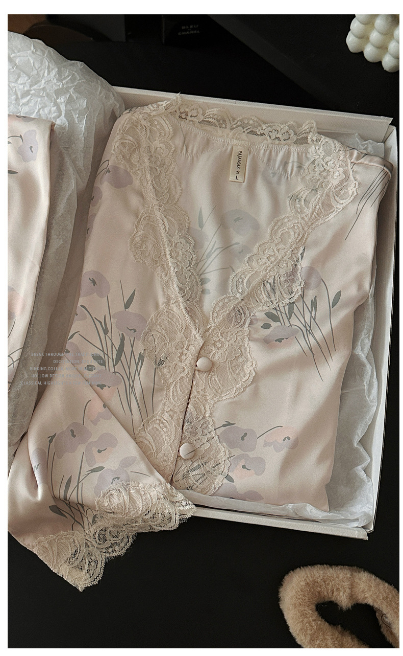 레이스 유란 꽃 아이스 실크 파자마 여성의 봄과 가을 착용 기질 맞춤형 플러스 사이즈 긴 소매 홈 의류 세트스토어 가기