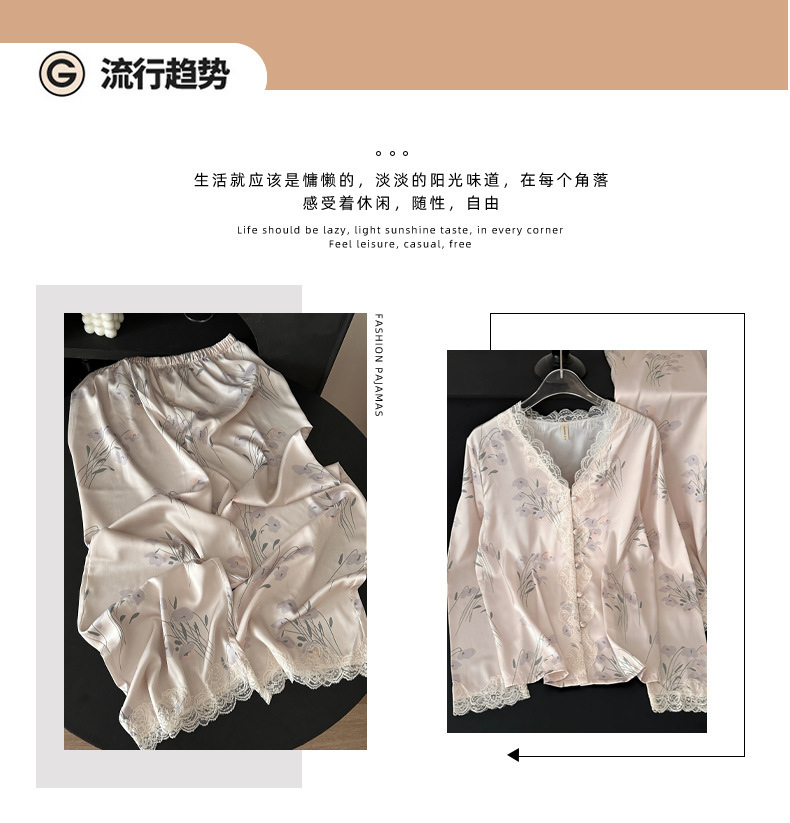 레이스 유란 꽃 아이스 실크 파자마 여성의 봄과 가을 착용 기질 맞춤형 플러스 사이즈 긴 소매 홈 의류 세트