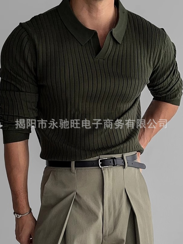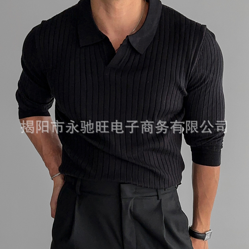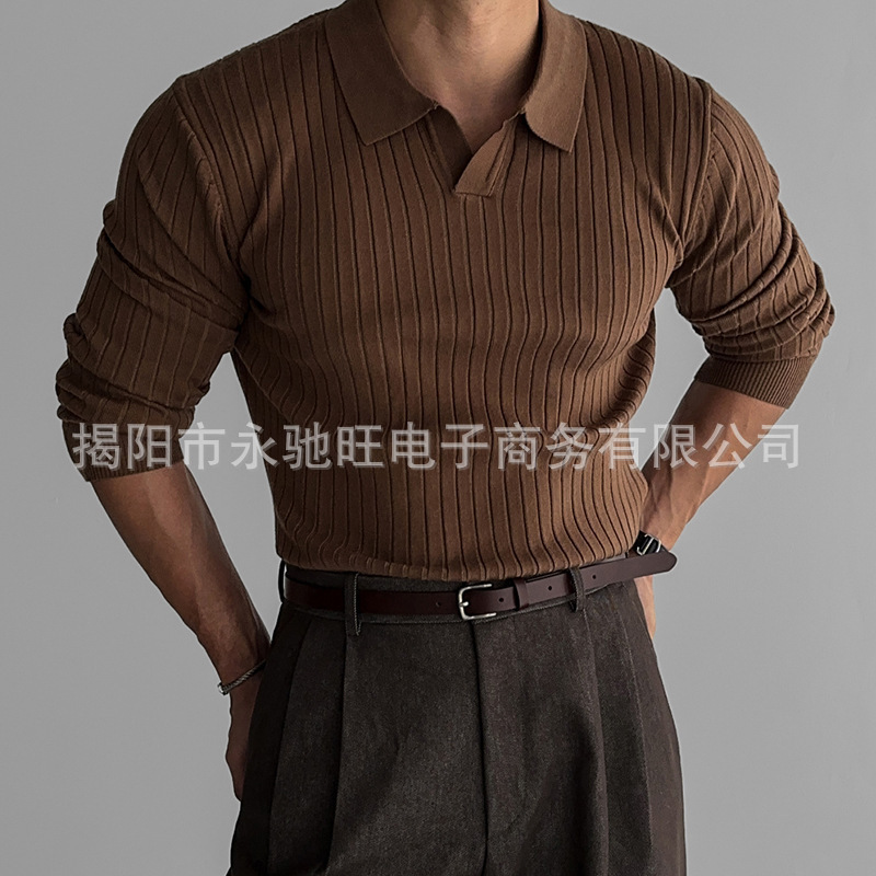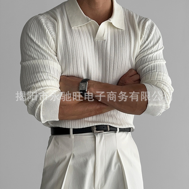 2024 한풍 봄과 가을 새로운 하이 엔드 니트 스웨터 편안한 솔리드 컬러 탄성 레이저 슬림 핏 긴팔 티셔츠스토어 가기