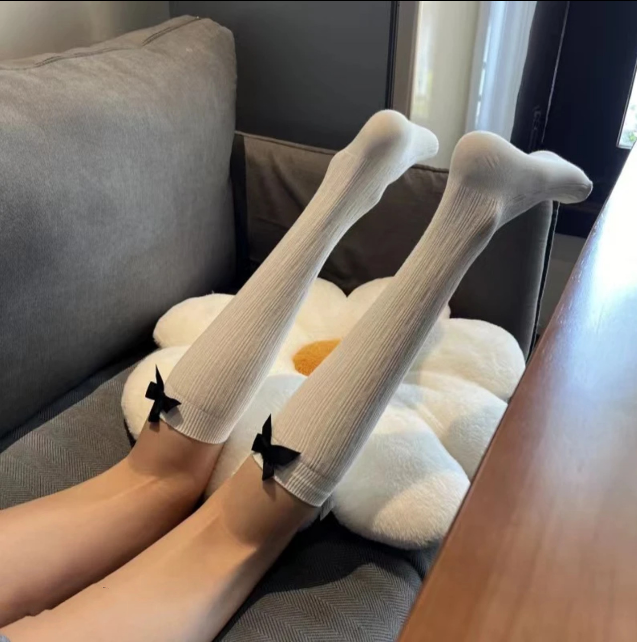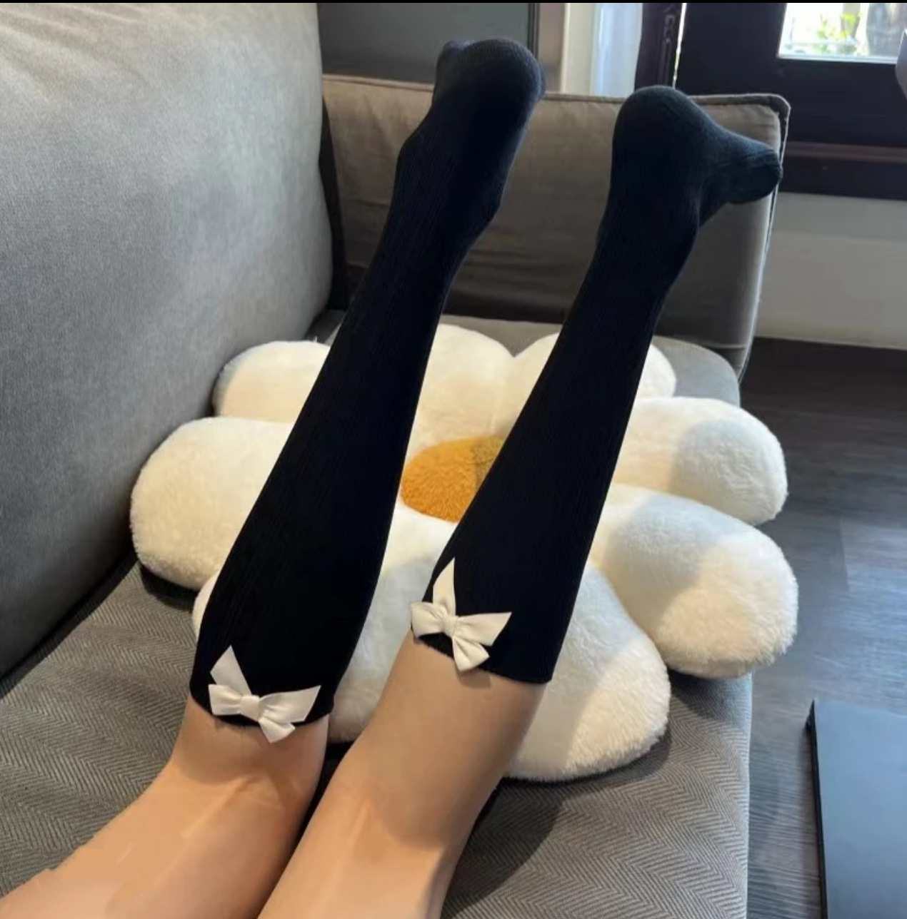 흑백 개성 뒤꿈치 활 종아리 양말 다리 통기성 양말 무릎 jk 바람 소녀 슬림 귀여운 더미스토어 가기