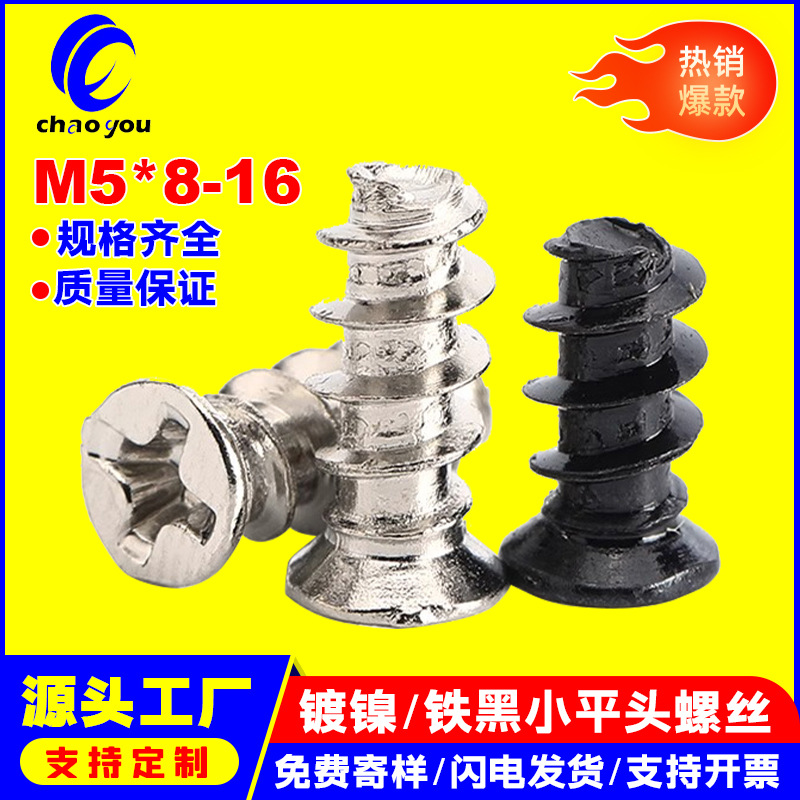 니켈 도금/철 검정색(소형 헤드) 냉각 팬 플랫 헤드 태핑 나사 접시 헤드 플랫 테일 태핑 및 컷오프 소형 나사 M5스토어 가기