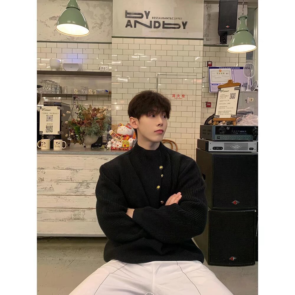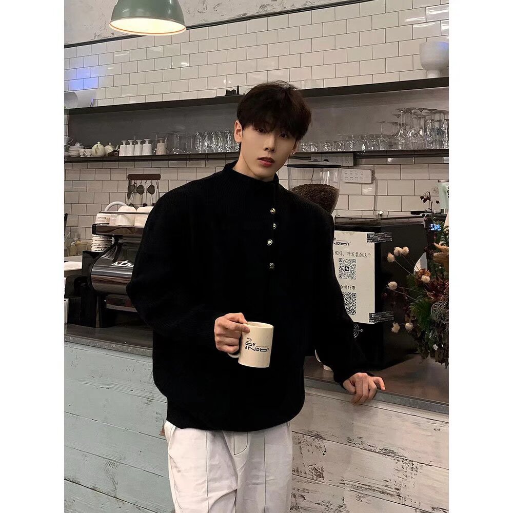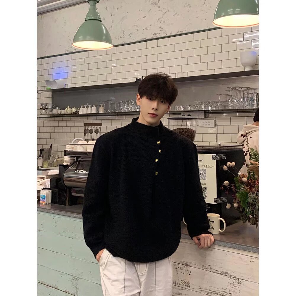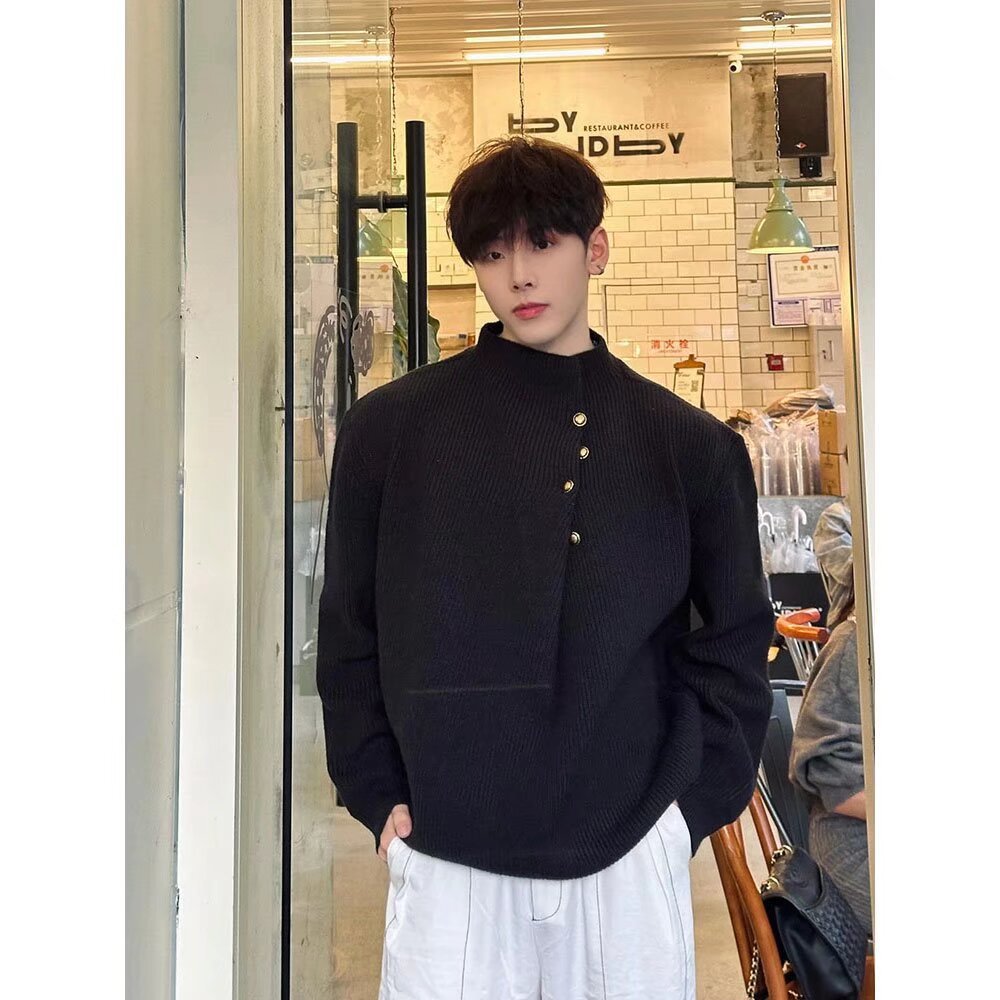 불규칙한 버튼 디자인의 남성용 터틀넥 스웨터 한국 트렌디 브랜드 멋진 게으른 청소년 스웨터 탑