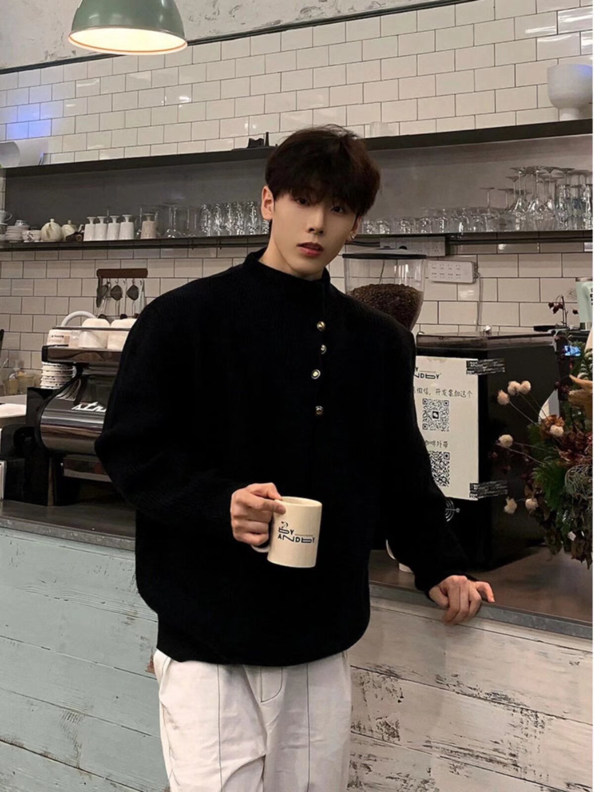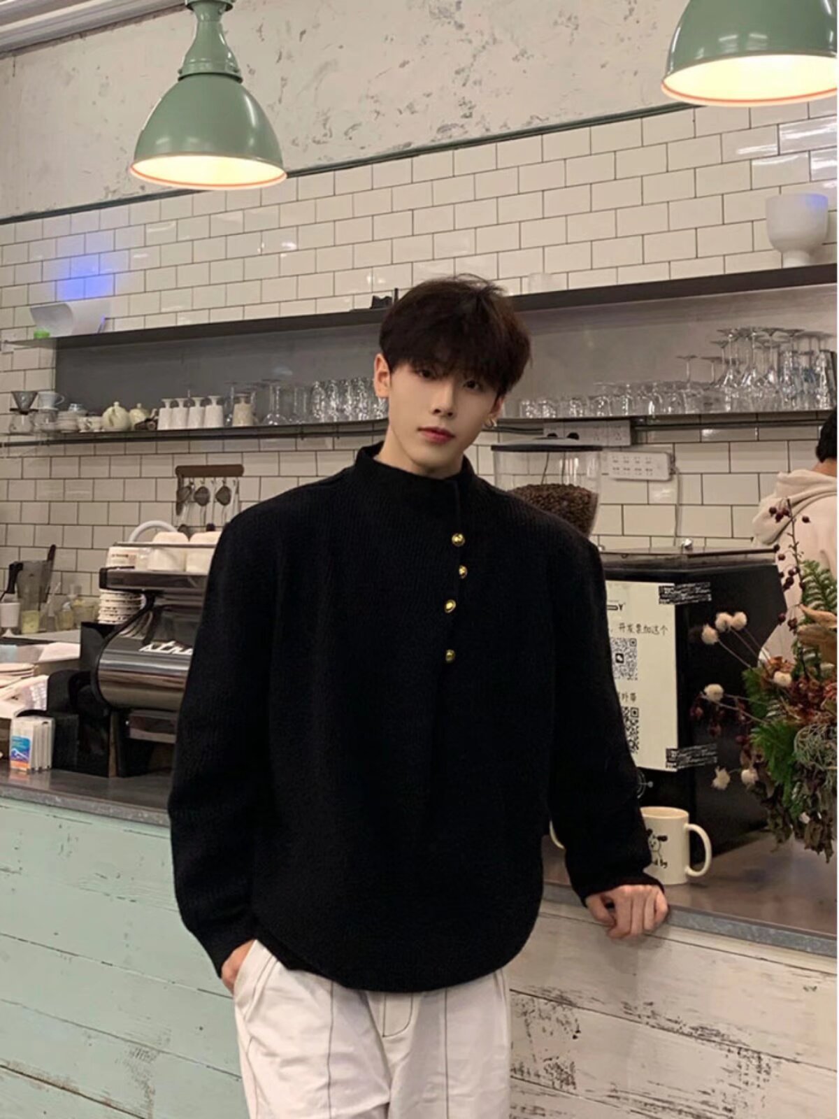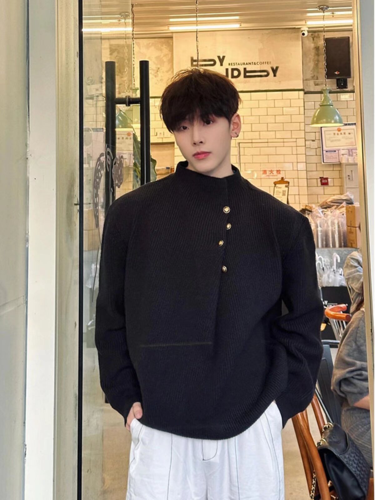 불규칙한 버튼 디자인의 남성용 터틀넥 스웨터 한국 트렌디 브랜드 멋진 게으른 청소년 스웨터 탑스토어 가기