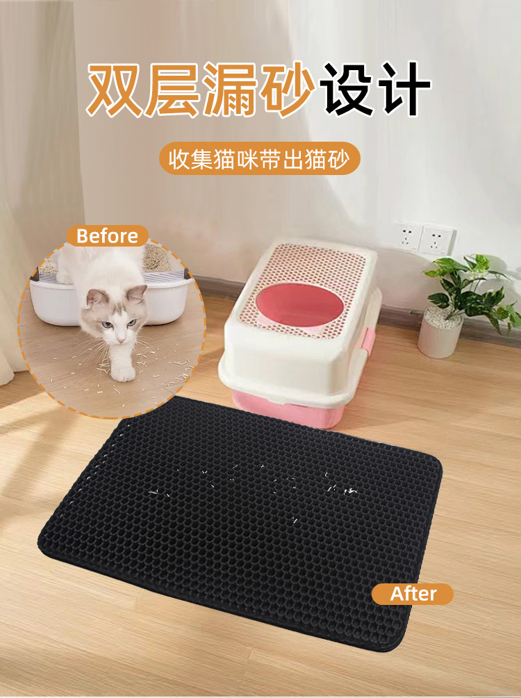 국경 간 EVA 고양이 쓰레기 매트 안티 스플래시 애완 동물 매트 벌집 구멍 더블 레이어 고양이 쓰레기 매트 필터 모래 내마모성 긁힘 방지 고양이 쓰레기 매트스토어 가기