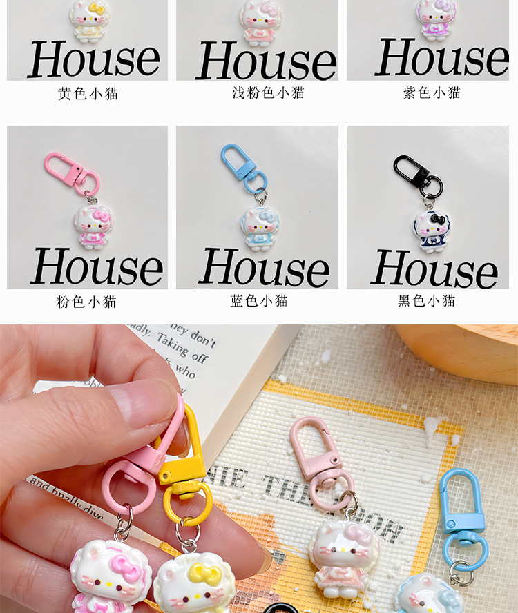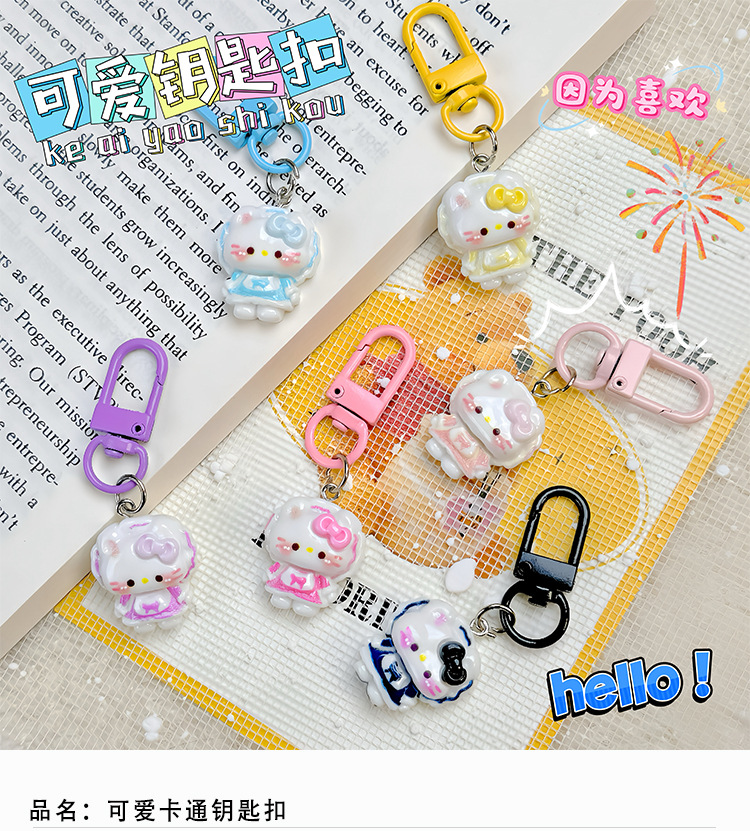만화 새로운 고양이 수지 키 체인 학생 소녀 배낭 펜던트 소녀 선물 액세서리 카드 홀더 매달려 장식품스토어 가기