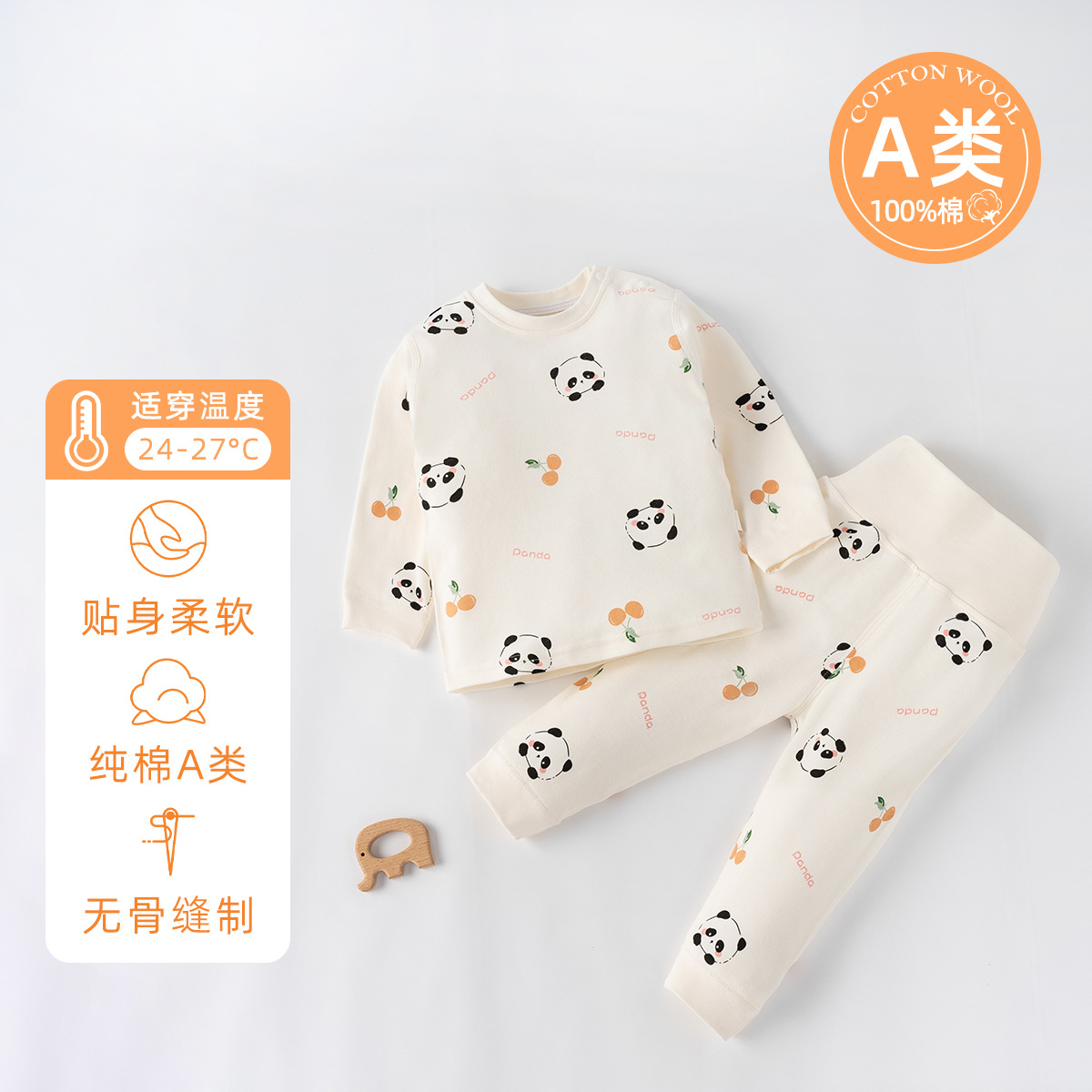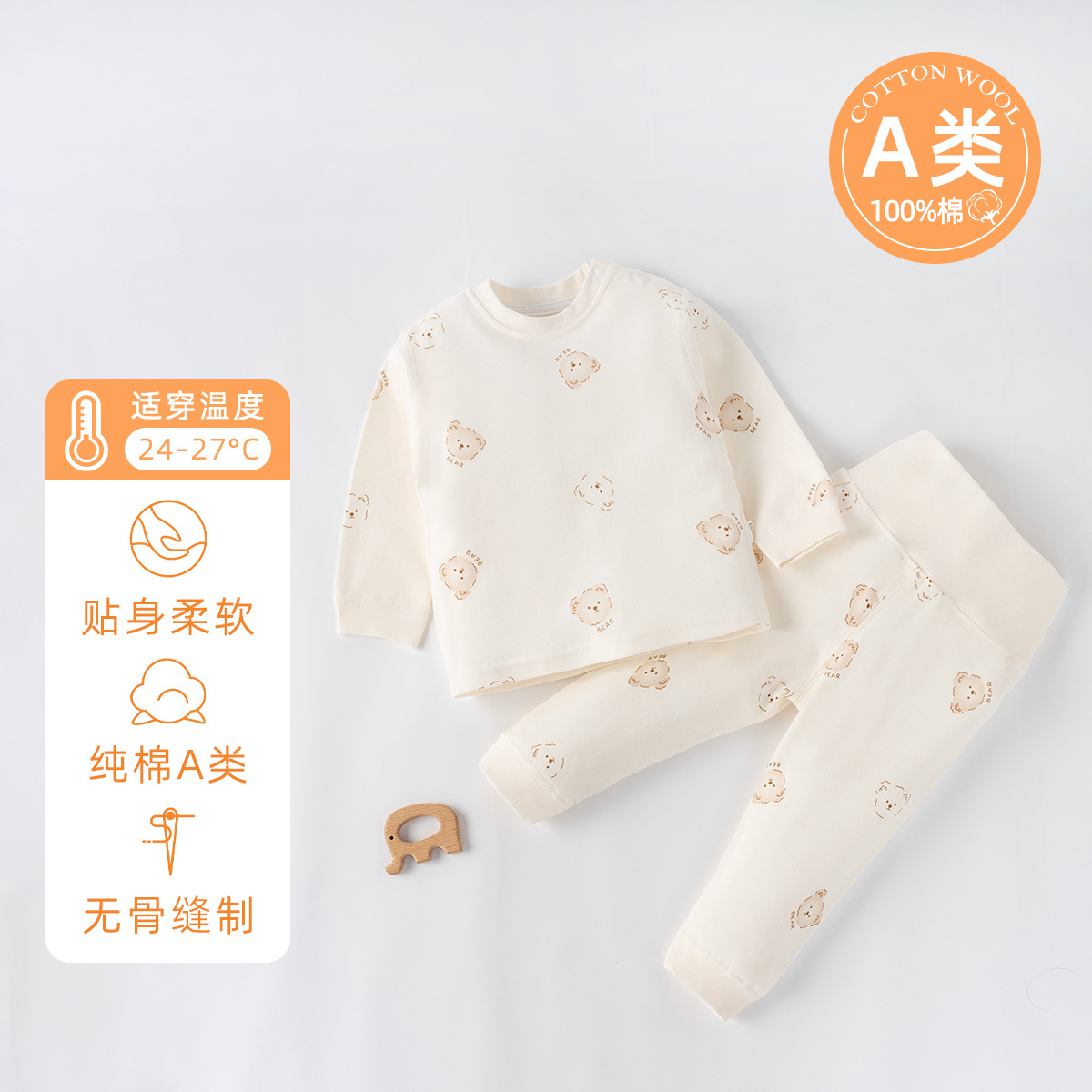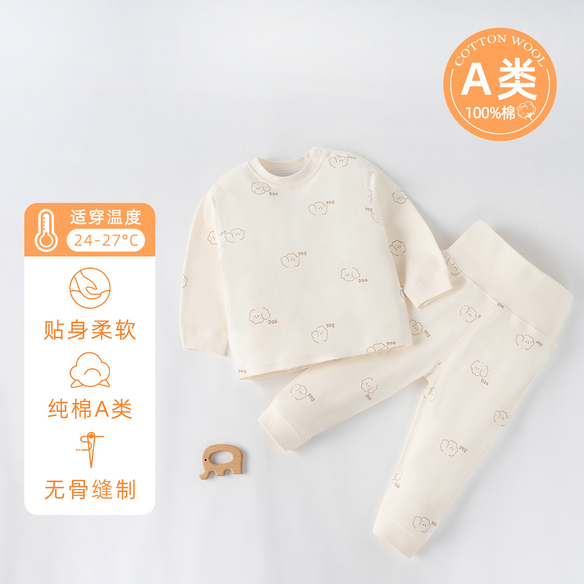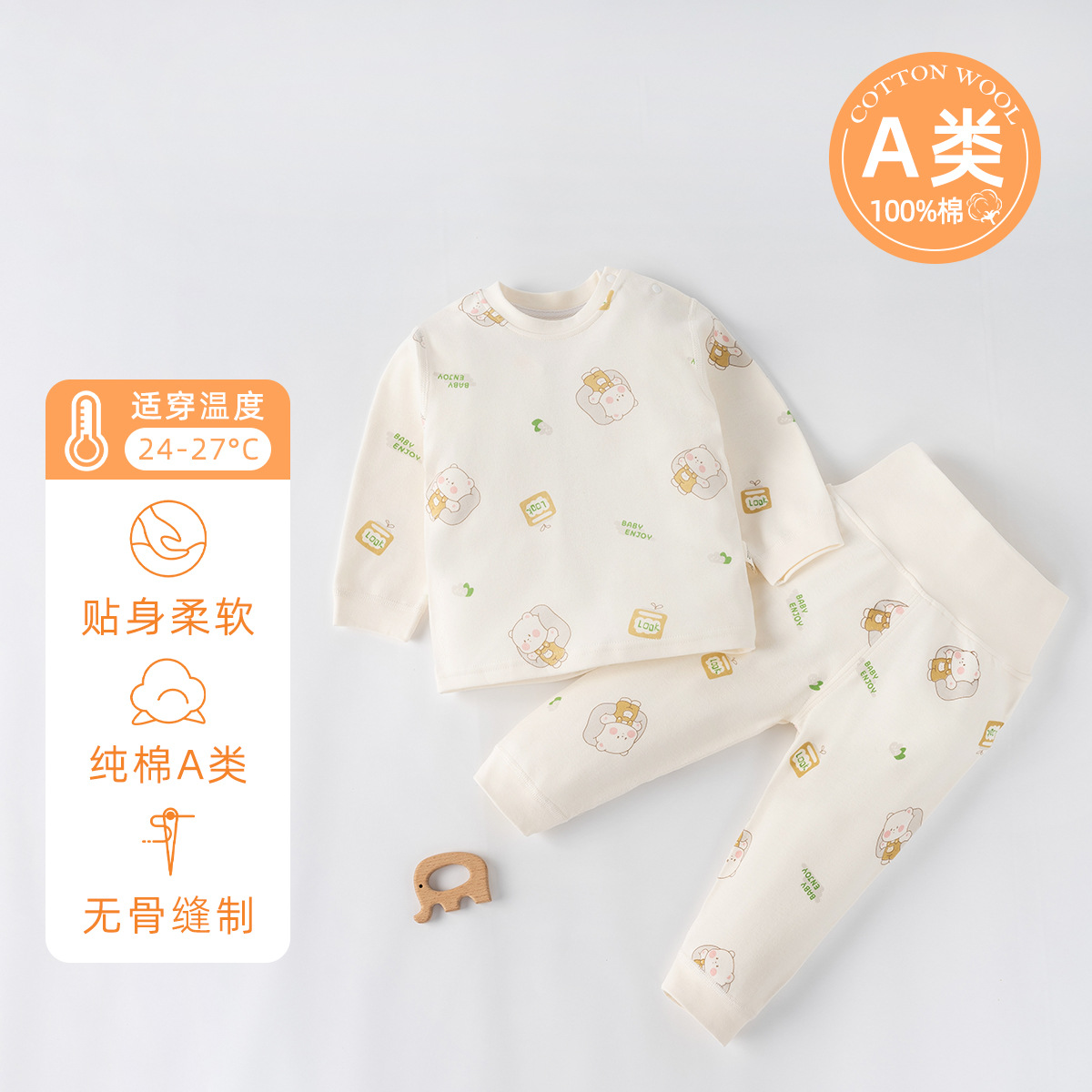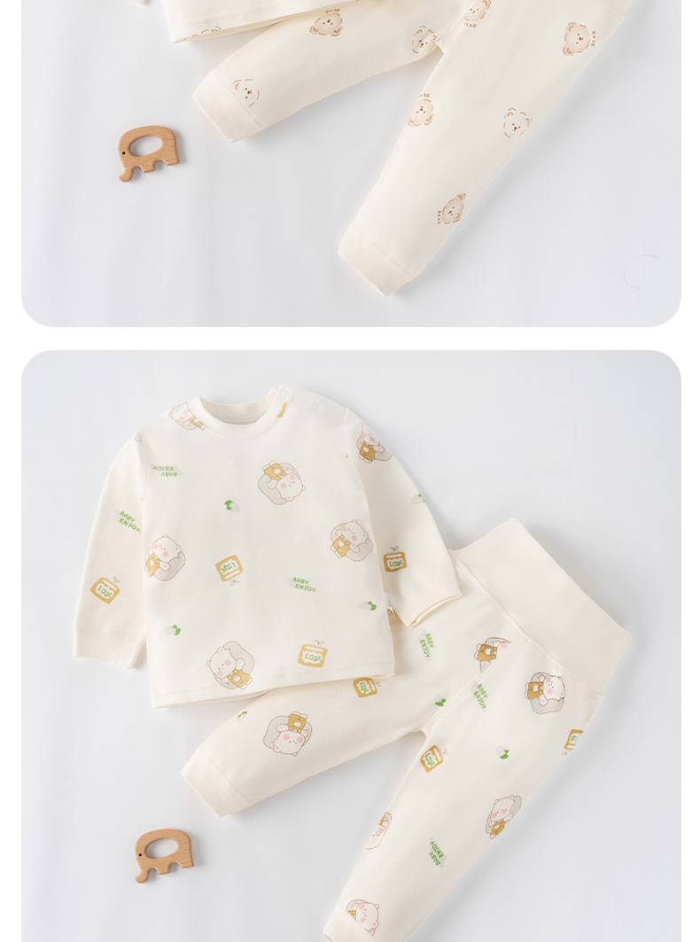 아기의 높은 허리 세트 봄과 가을면 남성 잠옷 여성 클래스 A 기본 가을 옷 가을 바지 아기 속옷 세트 따뜻한스토어 가기